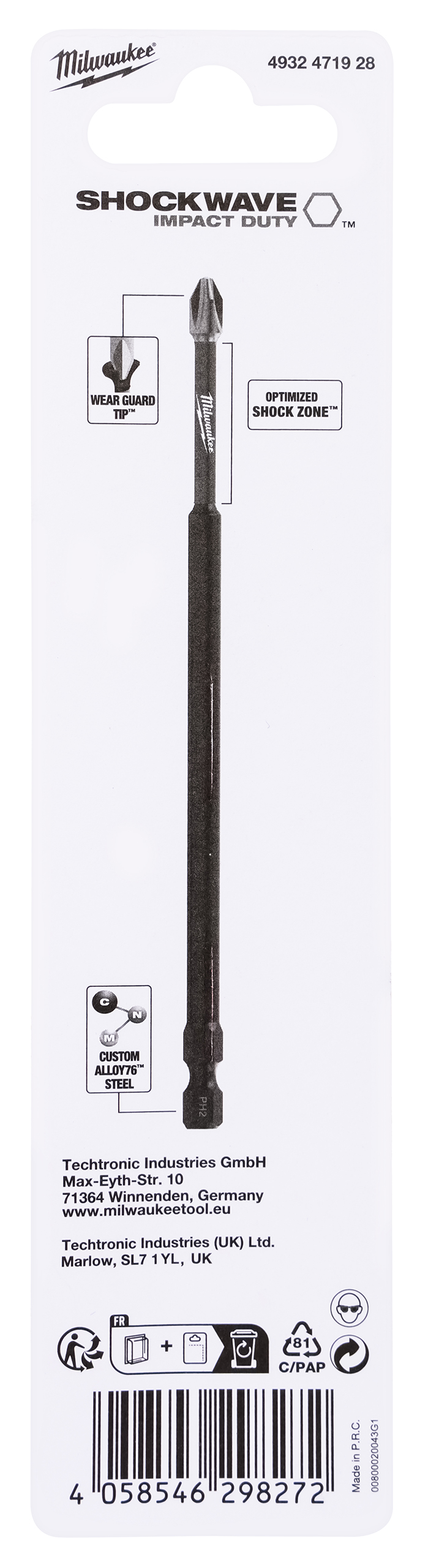 Bit udarowy Milwaukee Shockwave Pozidriv PZ2, 150 mm