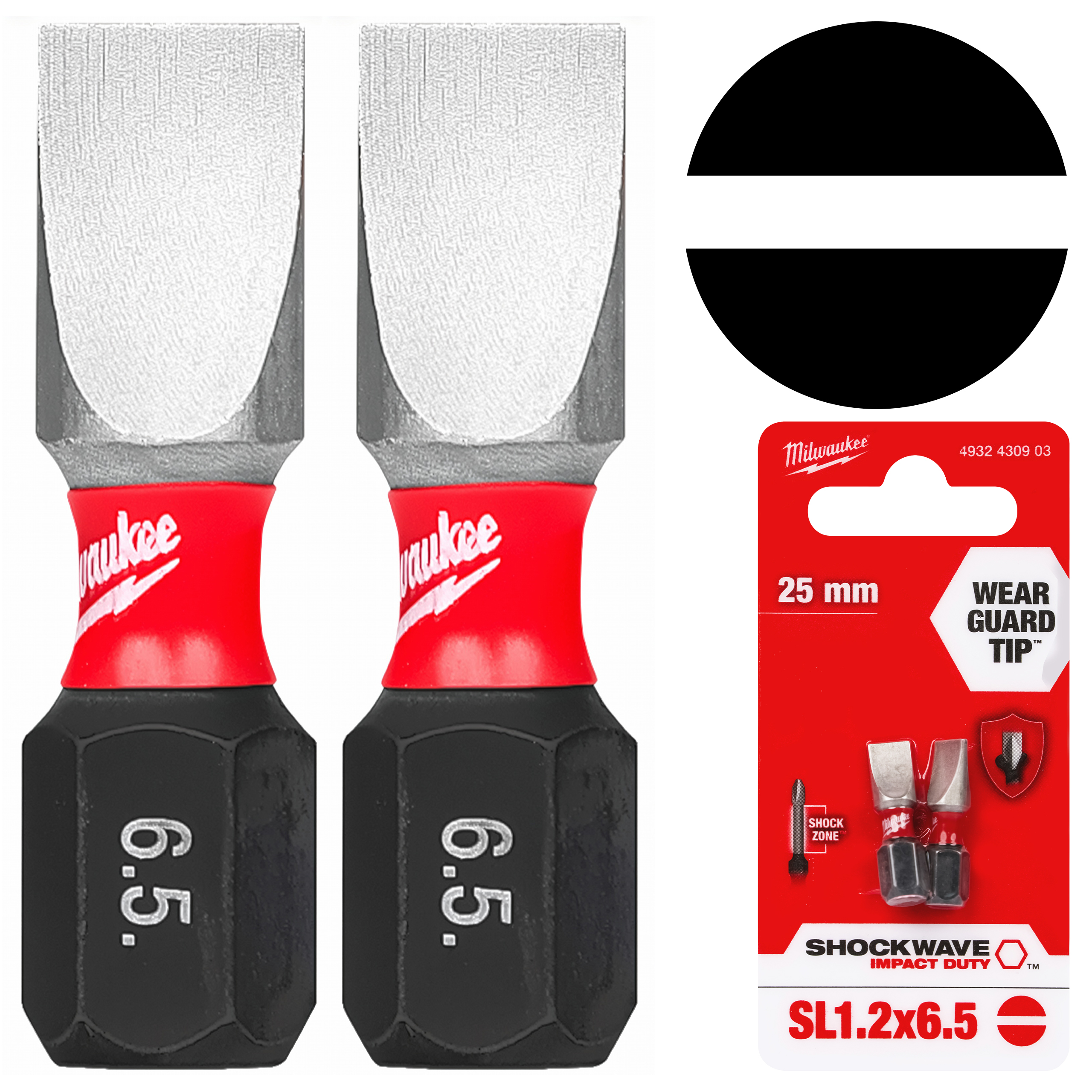 Opinie o Bity udarowe Milwaukee SL 1,2x6,5 mm, 25 mm 2 szt. Shockwave do zakrętarki