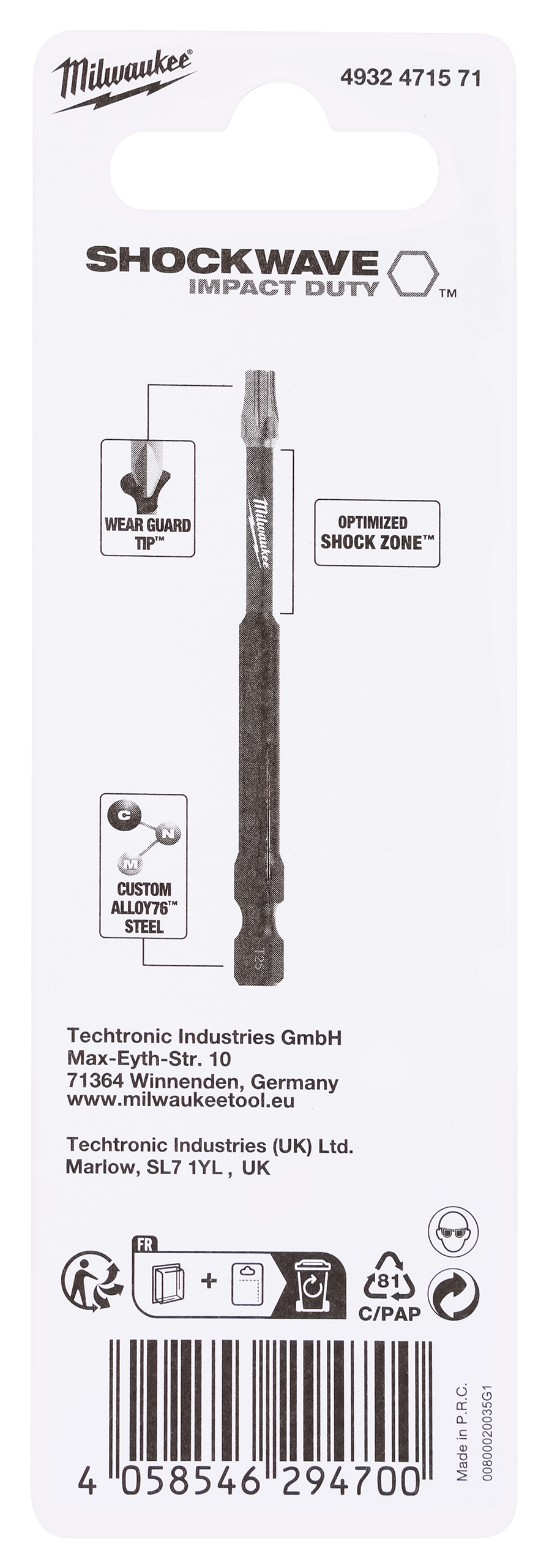 Specjalnie opracowany stop stali ALLOY76™ poddany dodatkowej obróbce termicznej zapewnia maksymalną odporność na uszkodzenia. Bity udarowe SHOCKWAVE™ gwarantują ekstremalną trwałość nawet przy najbardziej wymagających zastosowaniach.