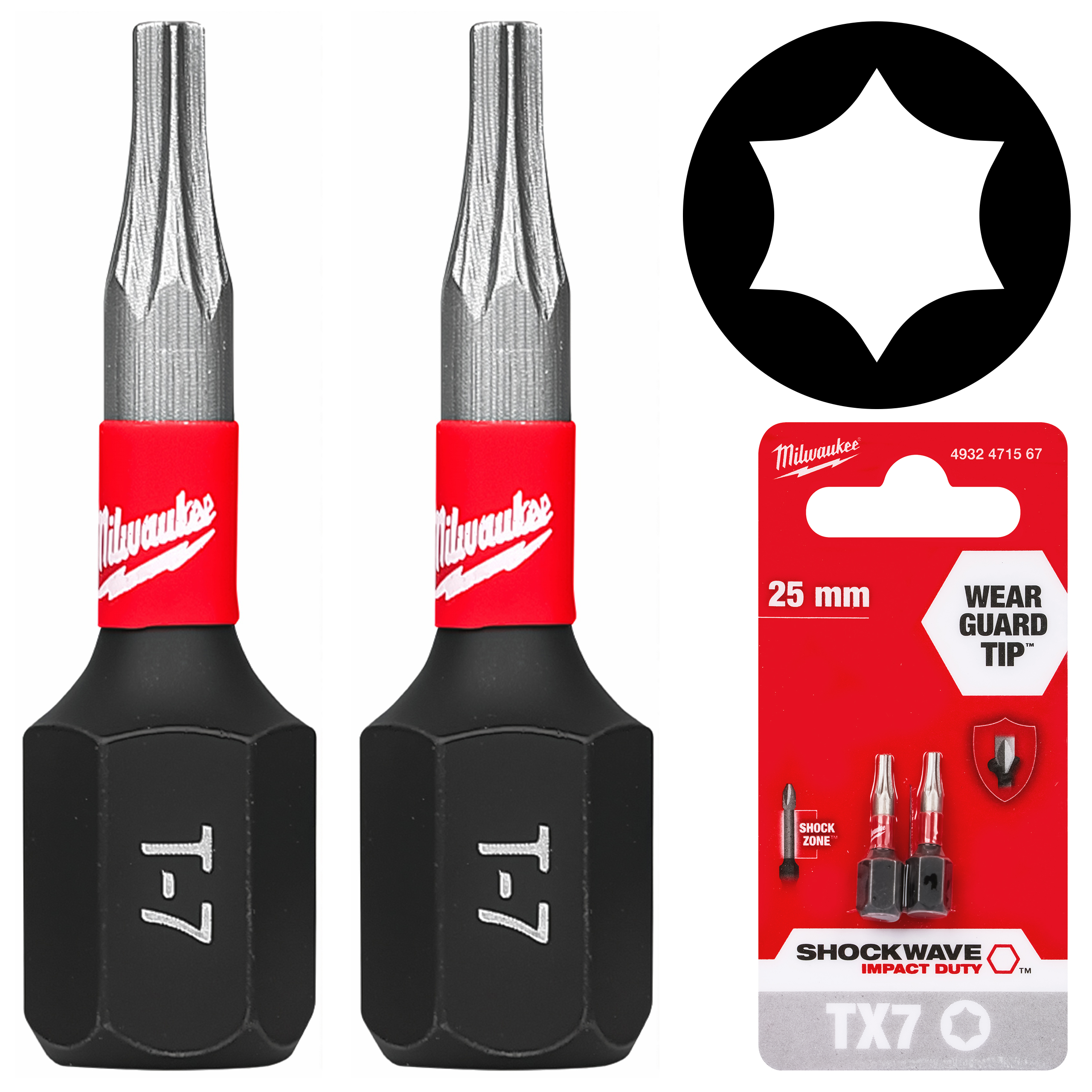 Opinie o Bity udarowe Milwaukee TORX TX7, 25 mm 2 szt. Shockwave do zakrętarki
