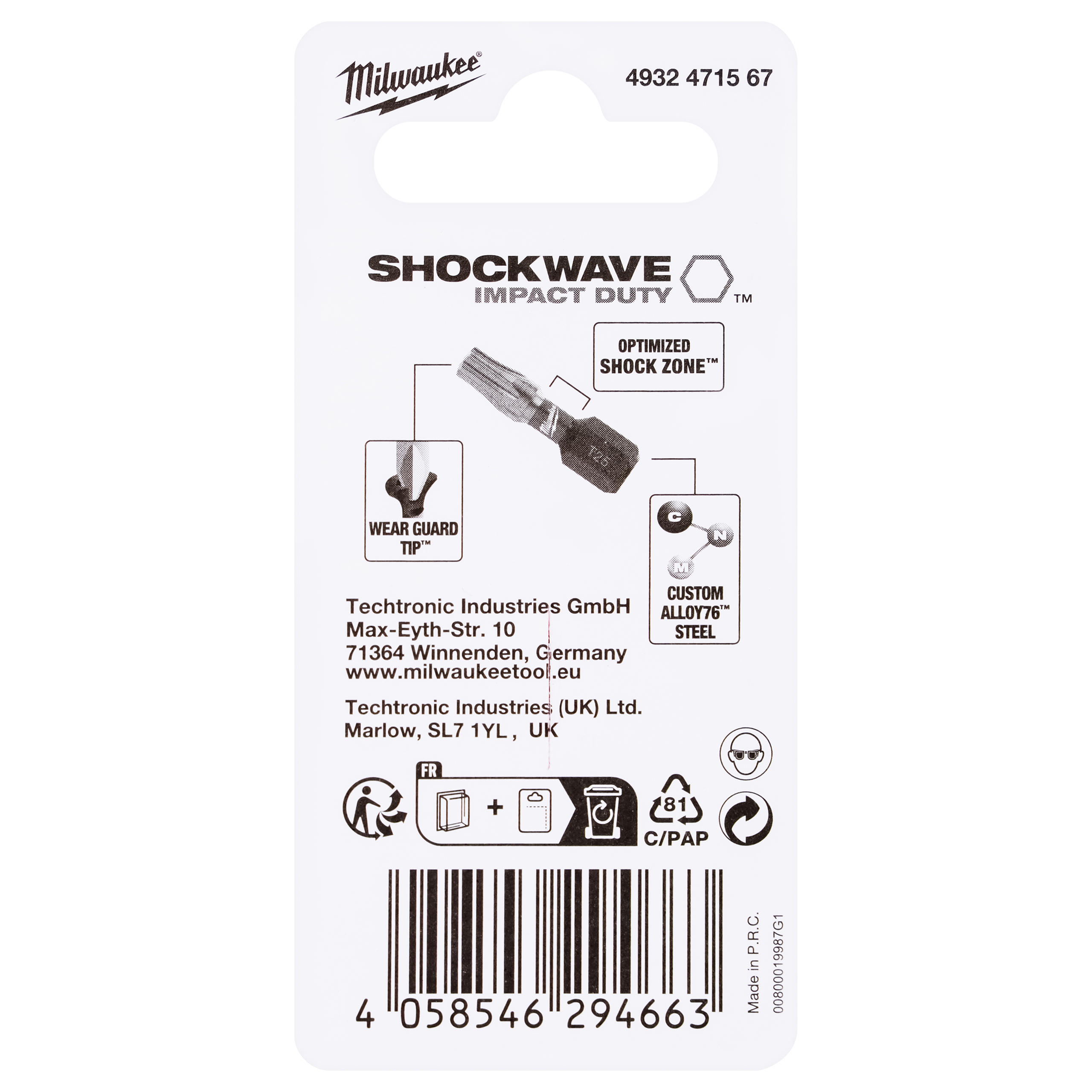 Bity udarowe Milwaukee Shockwave TX7, 25 mm