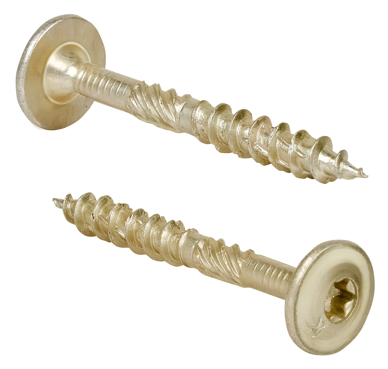 - Wkręty konstrukcyjne wykonane ze stali ocynkowanej posiadają łeb podkładkowy z gniazdem typu TORX oraz specjalną końcówkę wiercącą przeznaczoną do połączeń w konstrukcjach drewni