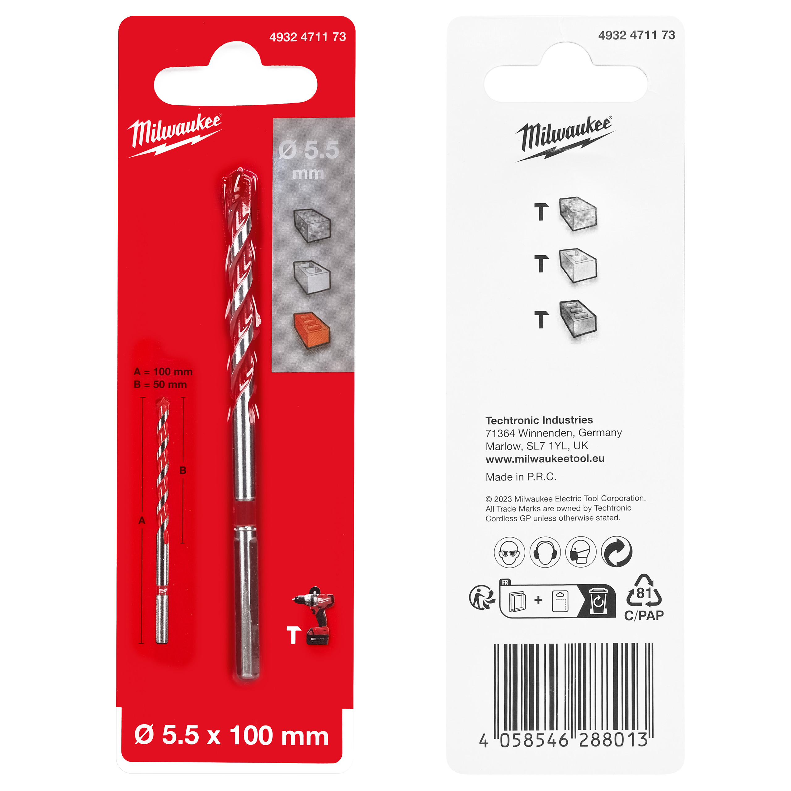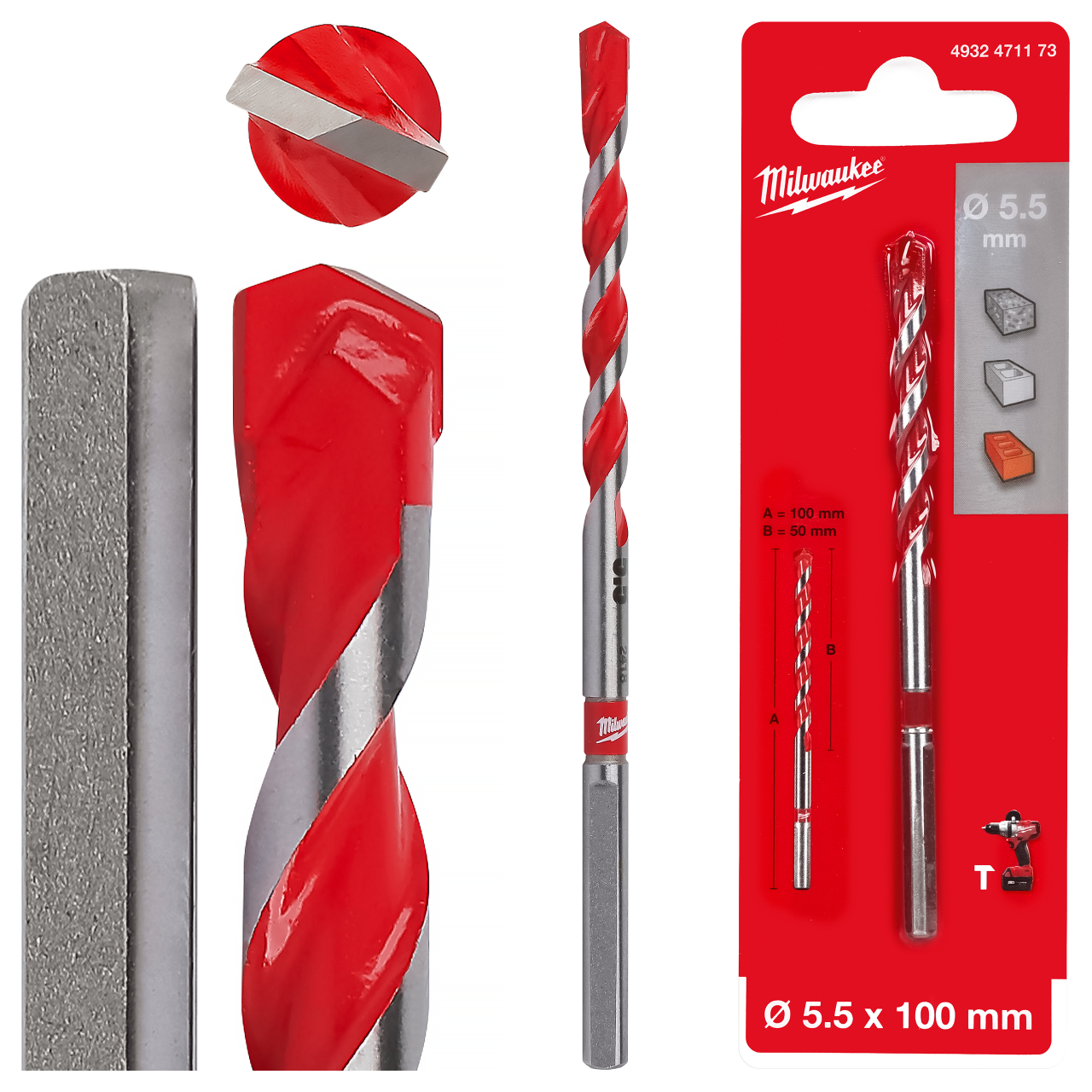 Wiertła Milwaukee Premium to linia profesjonalnych wierteł, które mogą być używane w trybie udarowym i obrotowym. Końcówki wierteł pokryte są węglikiem wolframu (TCT). Czerwone żłobienie ułatwia wyszukanie wiertła w skrzynce narzędziowej. Wiertła mają dwa rodzaje mocowania:
