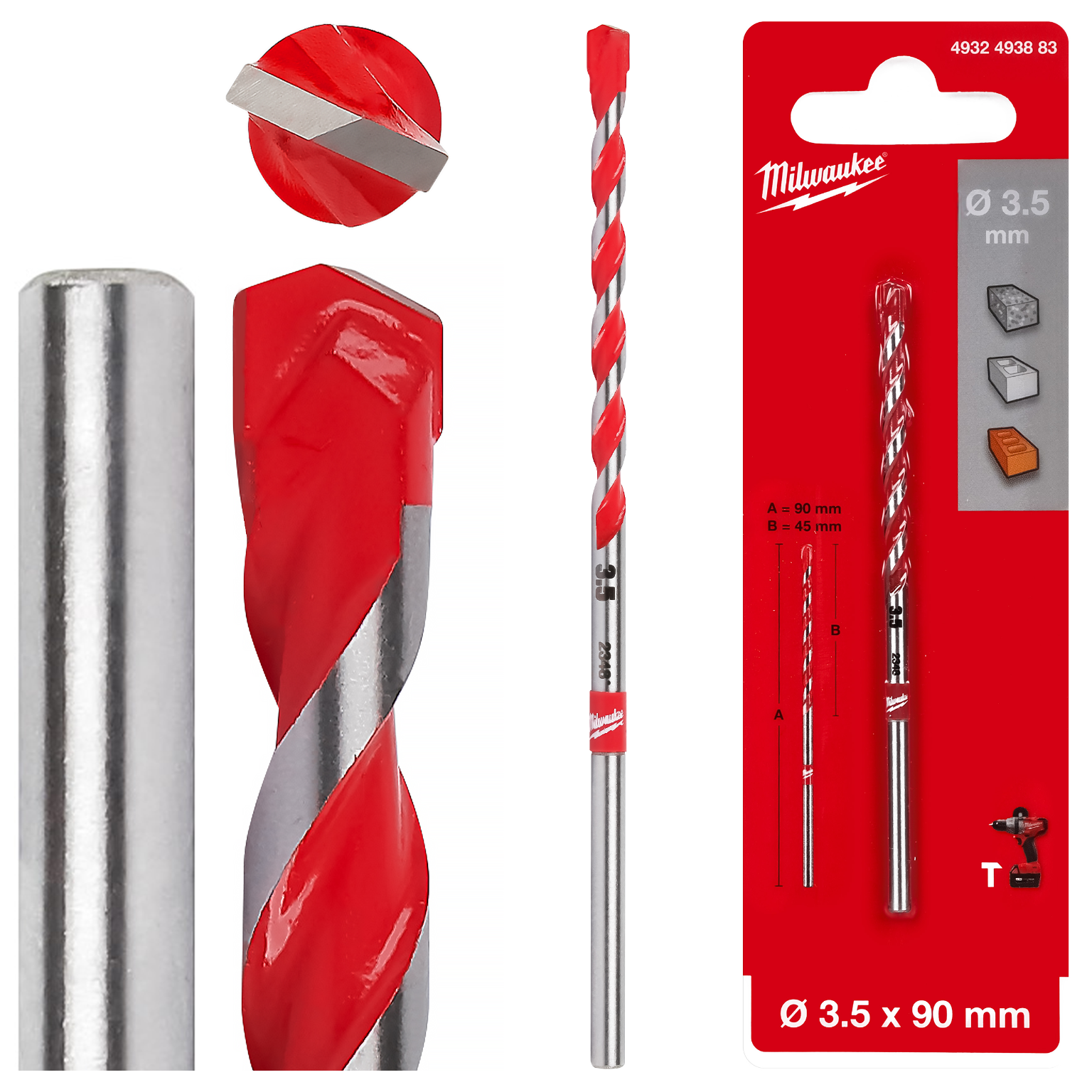 Wiertła Milwaukee Premium to linia profesjonalnych wierteł, które mogą być używane w trybie udarowym i obrotowym. Końcówki wierteł pokryte są węglikiem wolframu (TCT). Czerwone żłobienie ułatwia wyszukanie wiertła w skrzynce narzędziowej. Wiertła mają dwa rodzaje mocowania: