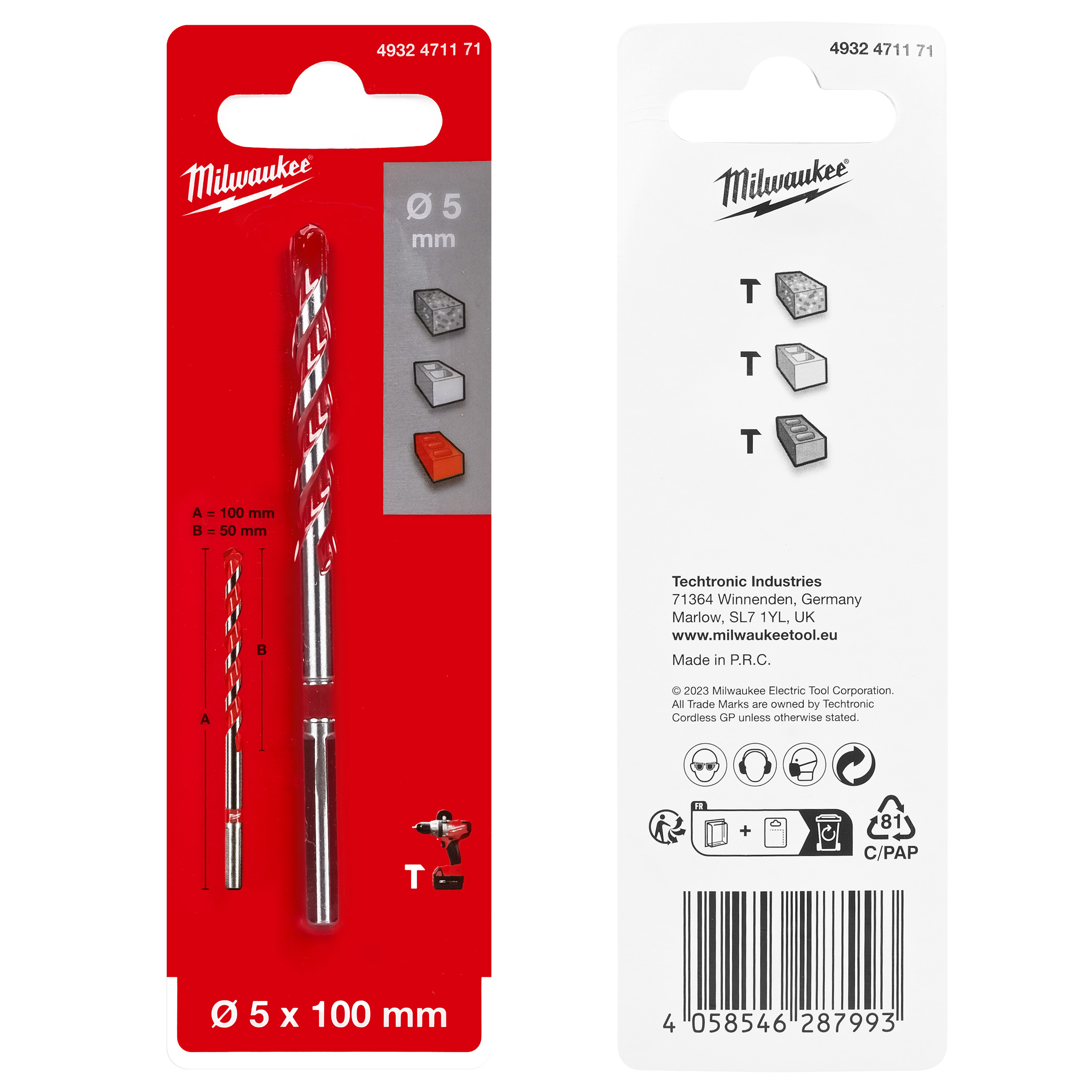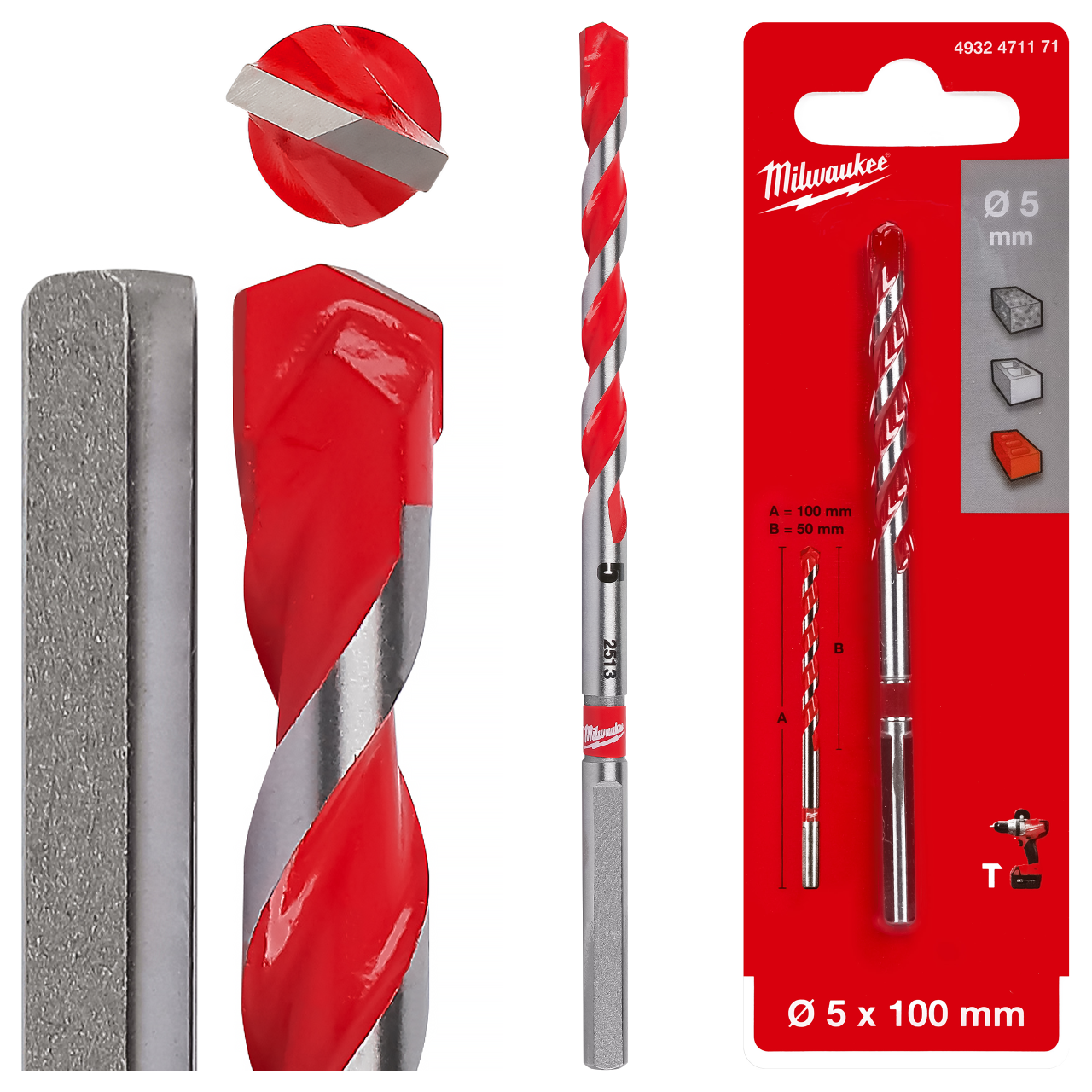 - Wiertło do betonu 5,0x100 mm Milwaukee Premium TCT