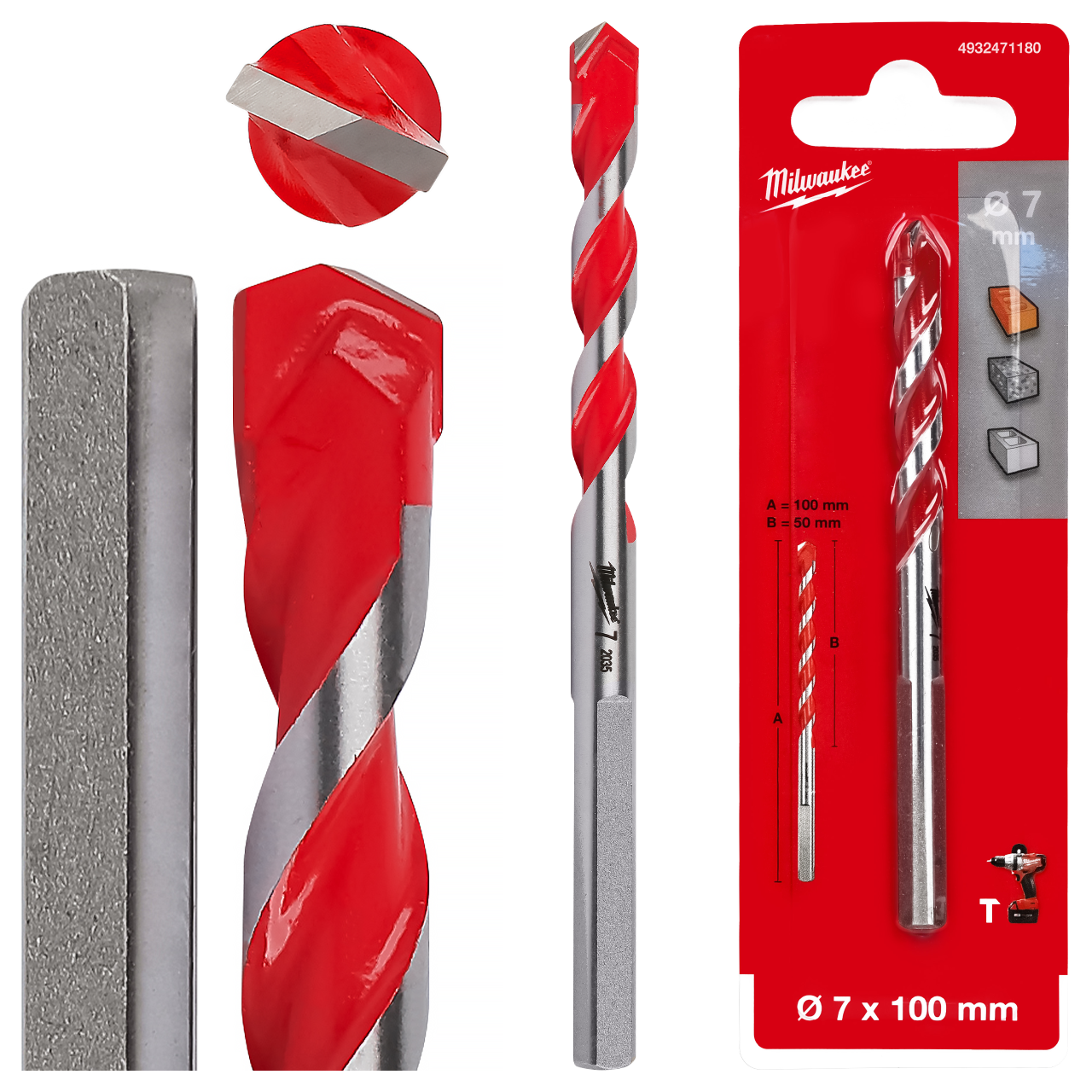 Wiertła Milwaukee Premium to linia profesjonalnych wierteł, które mogą być używane w trybie udarowym i obrotowym. Końcówki wierteł pokryte są węglikiem wolframu (TCT). Czerwone żłobienie ułatwia wyszukanie wiertła w skrzynce narzędziowej. Wiertła mają dwa rodzaje mocowania: