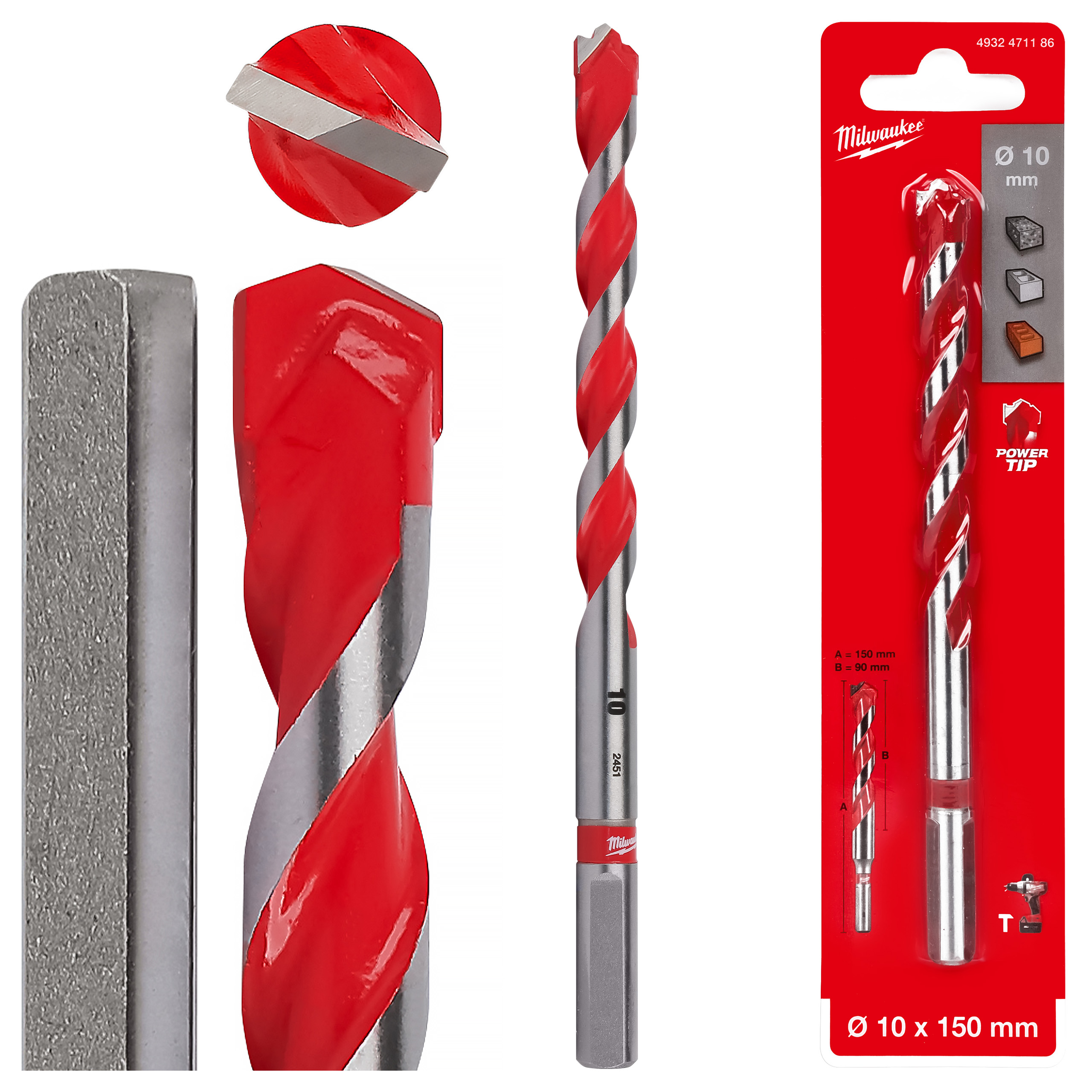 Wiertła Milwaukee Premium to linia profesjonalnych wierteł, które mogą być używane w trybie udarowym i obrotowym. Końcówki wierteł pokryte są węglikiem wolframu (TCT). Czerwone żłobienie ułatwia wyszukanie wiertła w skrzynce narzędziowej. Wiertła mają dwa rodzaje mocowania: