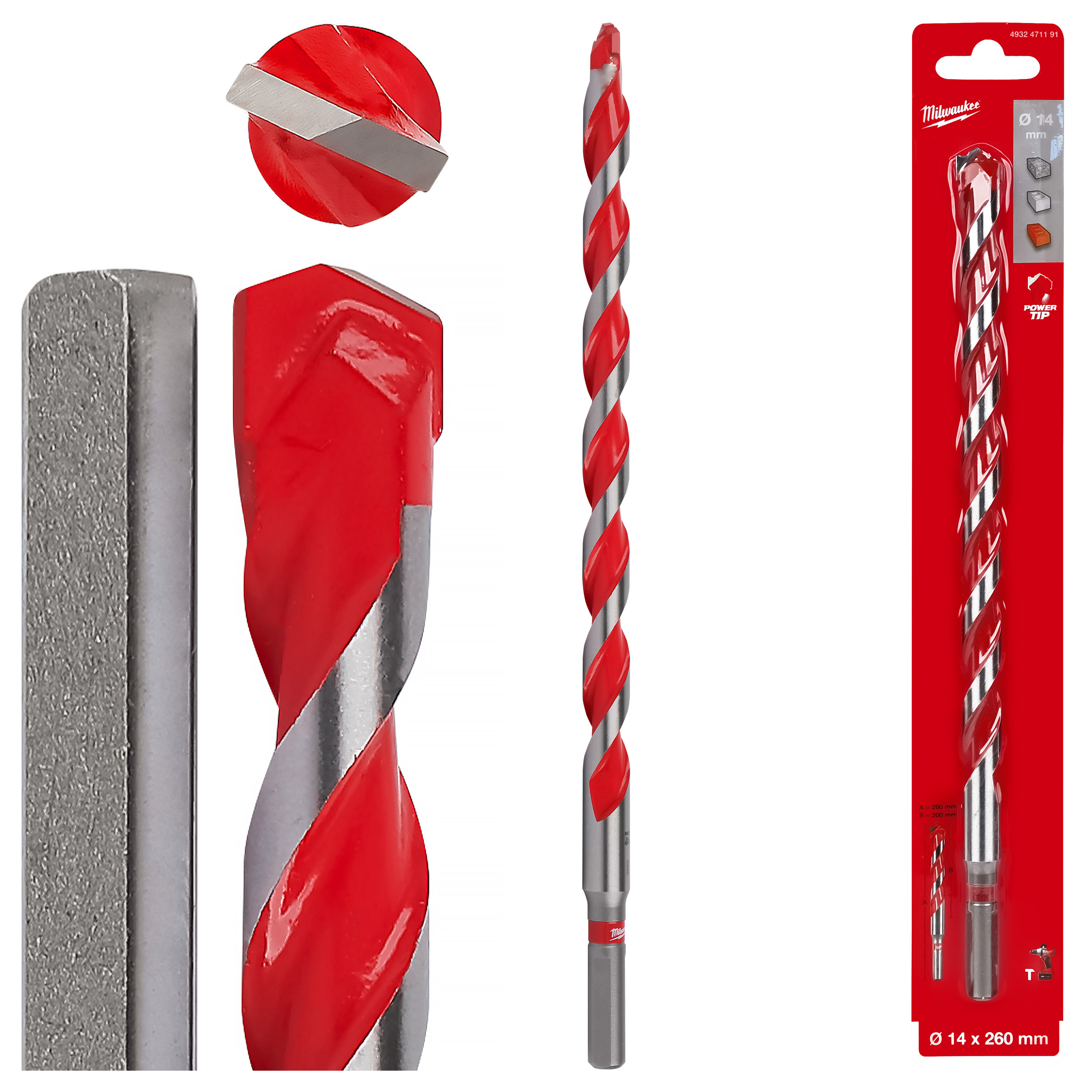 Wiertła Milwaukee Premium to linia profesjonalnych wierteł, które mogą być używane w trybie udarowym i obrotowym. Końcówki wierteł pokryte są węglikiem wolframu (TCT). Czerwone żłobienie ułatwia wyszukanie wiertła w skrzynce narzędziowej. Wiertła mają dwa rodzaje mocowania: