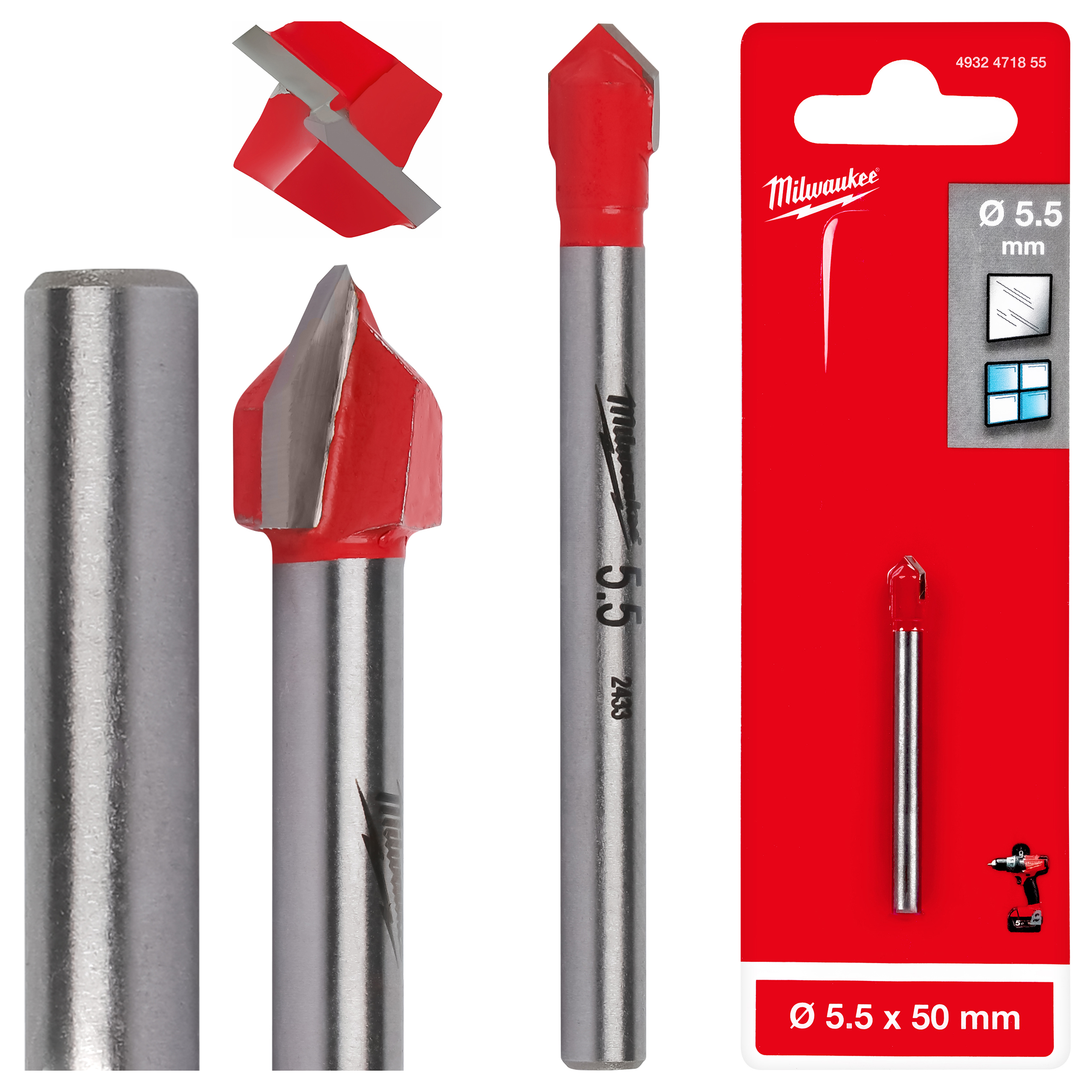 - Wiertło 5.5x50 mm Milwaukee do szkła, płytek, ceramiki.