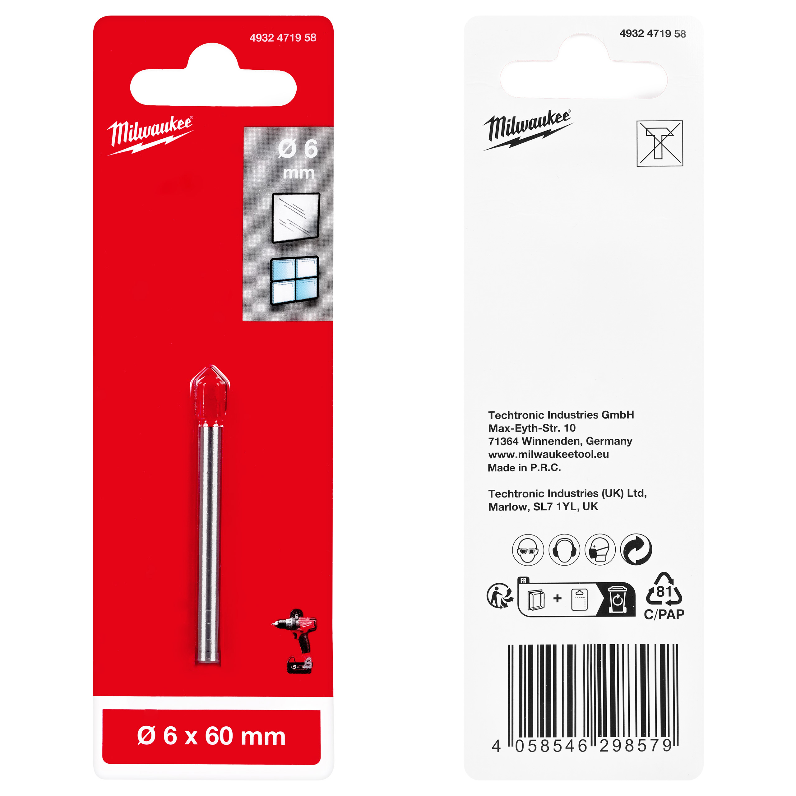 - Wiertło 6x60 mm Milwaukee do szkła, płytek, ceramiki.