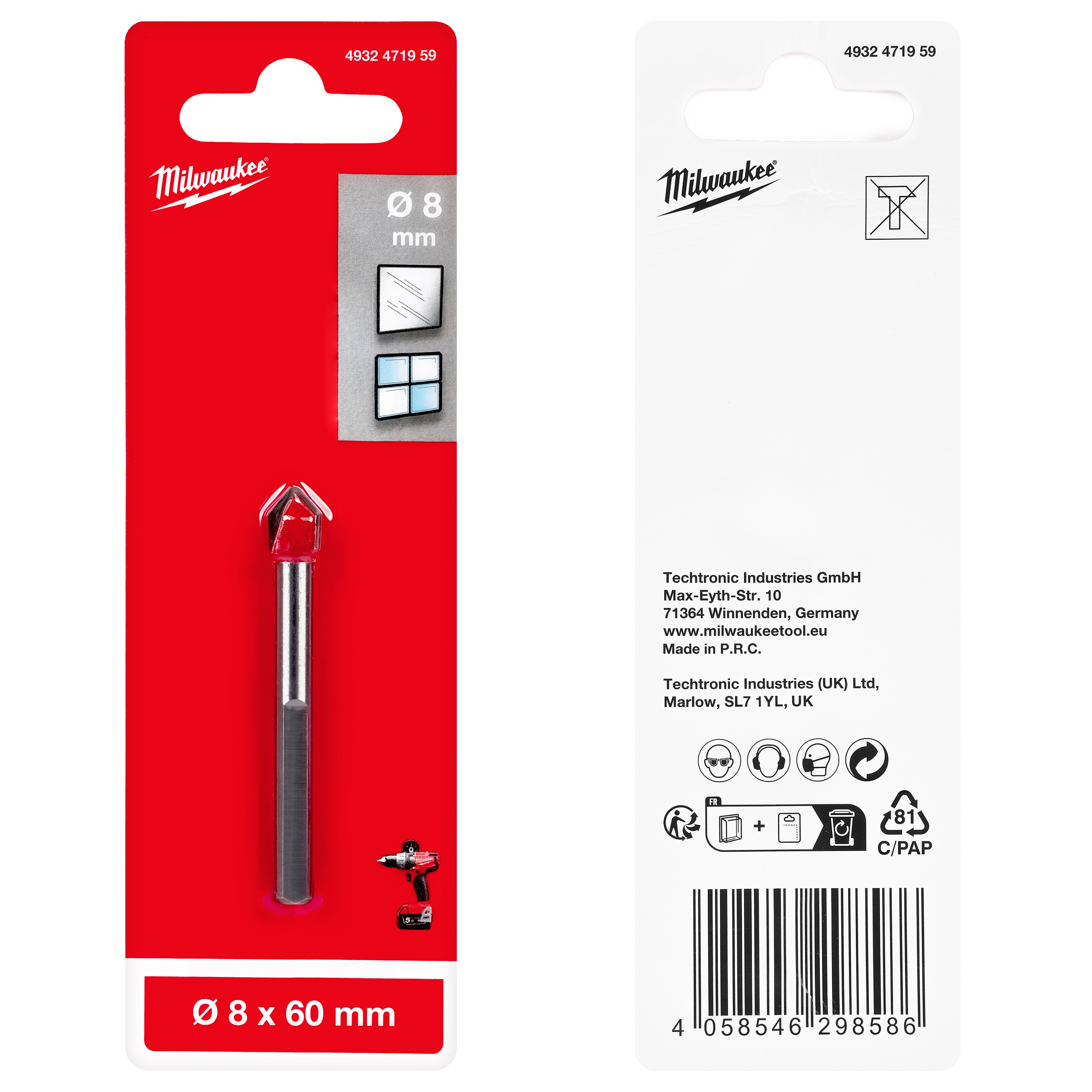 - Wiertło 8x60 mm Milwaukee do szkła, płytek, ceramiki.