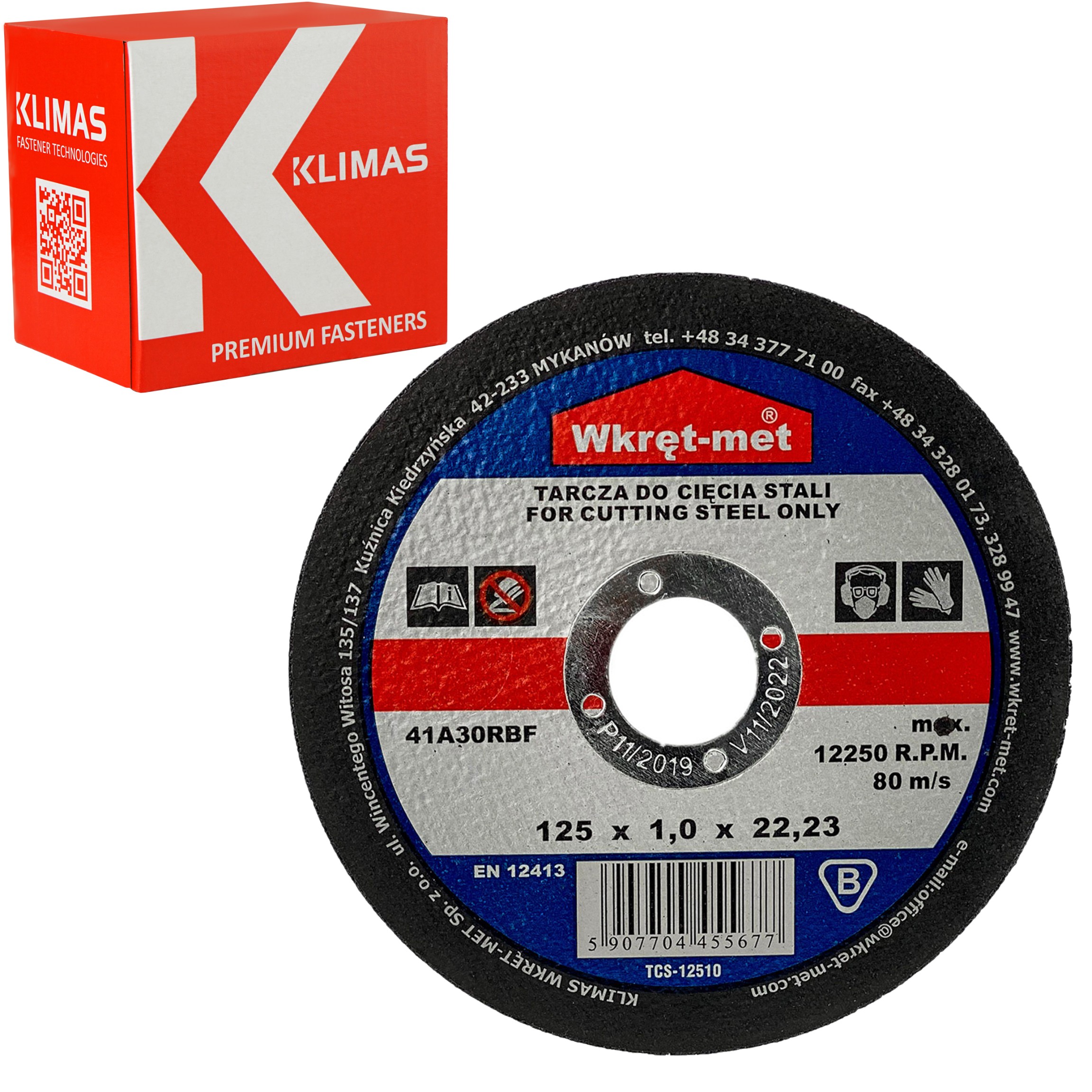 Tarcze do ciecia metalu 125 mm 100 szt. korundowe Klimas TCS125