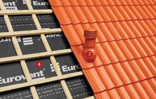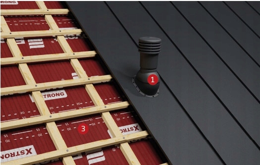 Szczelne podstawy, przejścia kominka Eurovent® VENTOS X pozwalające na szybki i łatwy montaż na pokryciach dachowych z blachodachówki, blach płaskich, trapezowych oraz gontów bitumicznych