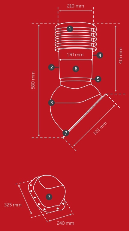 6) PRZEPŁYW - zwiększony przepływ powietrza dzięki zastosowaniu dużej średnicy wentylacyjnej aż 170 mm.