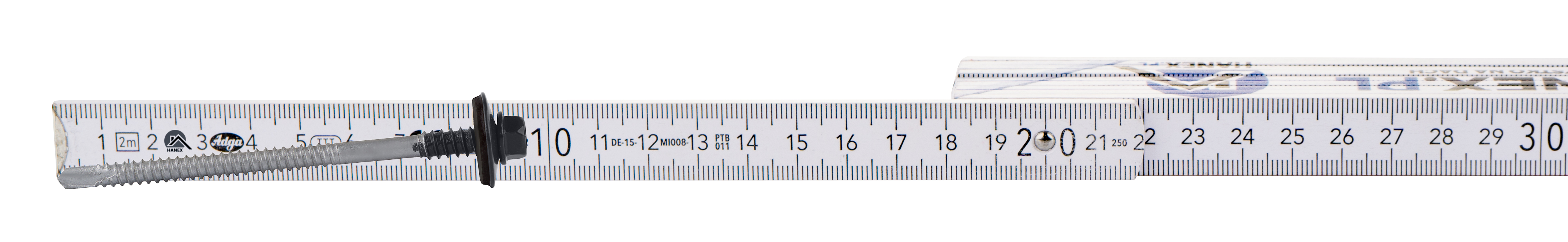 Dodatkowy gwint o zwiększonej średnicy zapewnia właściwe rozłożenie podkładki EPDM na cienkich blachach okładzinowych płyty warstwowej.