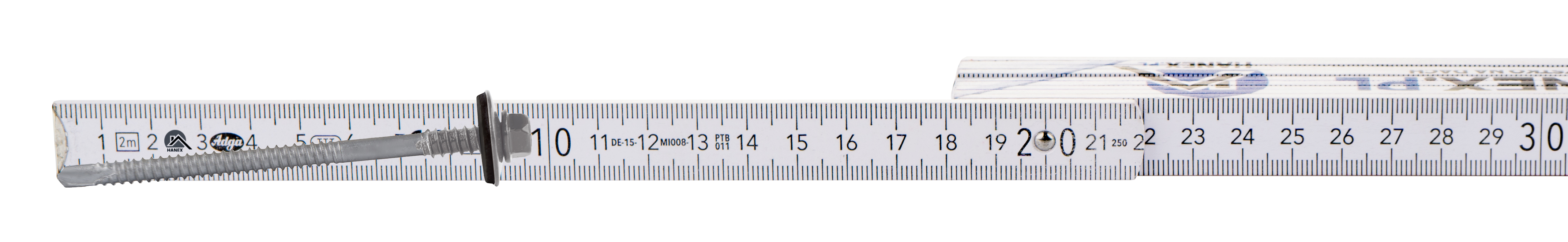 Dodatkowy gwint o zwiększonej średnicy zapewnia właściwe rozłożenie podkładki EPDM na cienkich blachach okładzinowych płyty warstwowej.