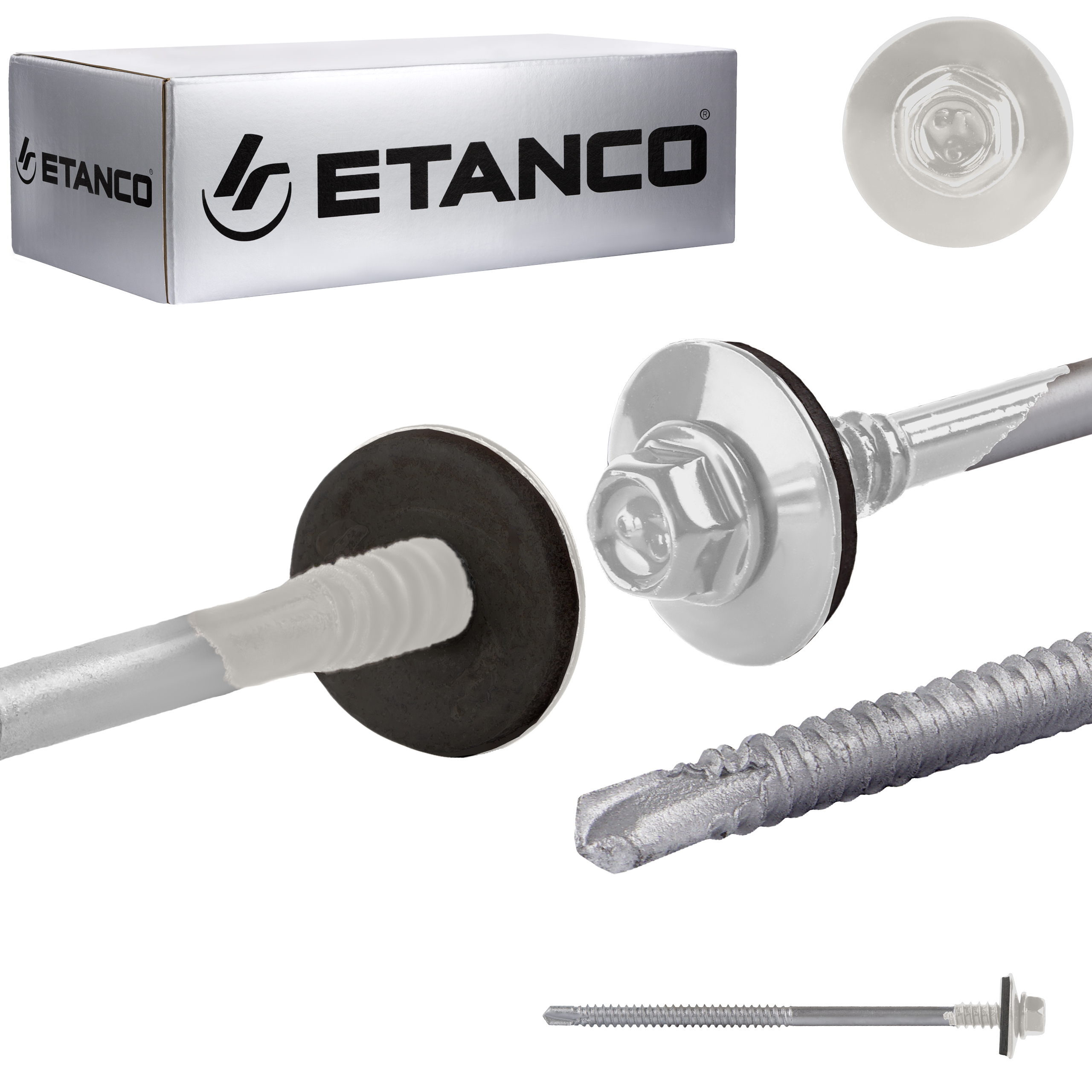 Łeb sześciokątny zapewnia łatwy i pewny montaż wkrętów, co znacząco ułatwia pracę i zwiększa efektywność montażu. Charakterystyczne znakowanie produktów ETANCO, pozwala na ich łatwe rozpoznanie, każda partia produkcyjna otrzymuje unikalny numer, co umożliwia jej precyzyjną identyfikację.