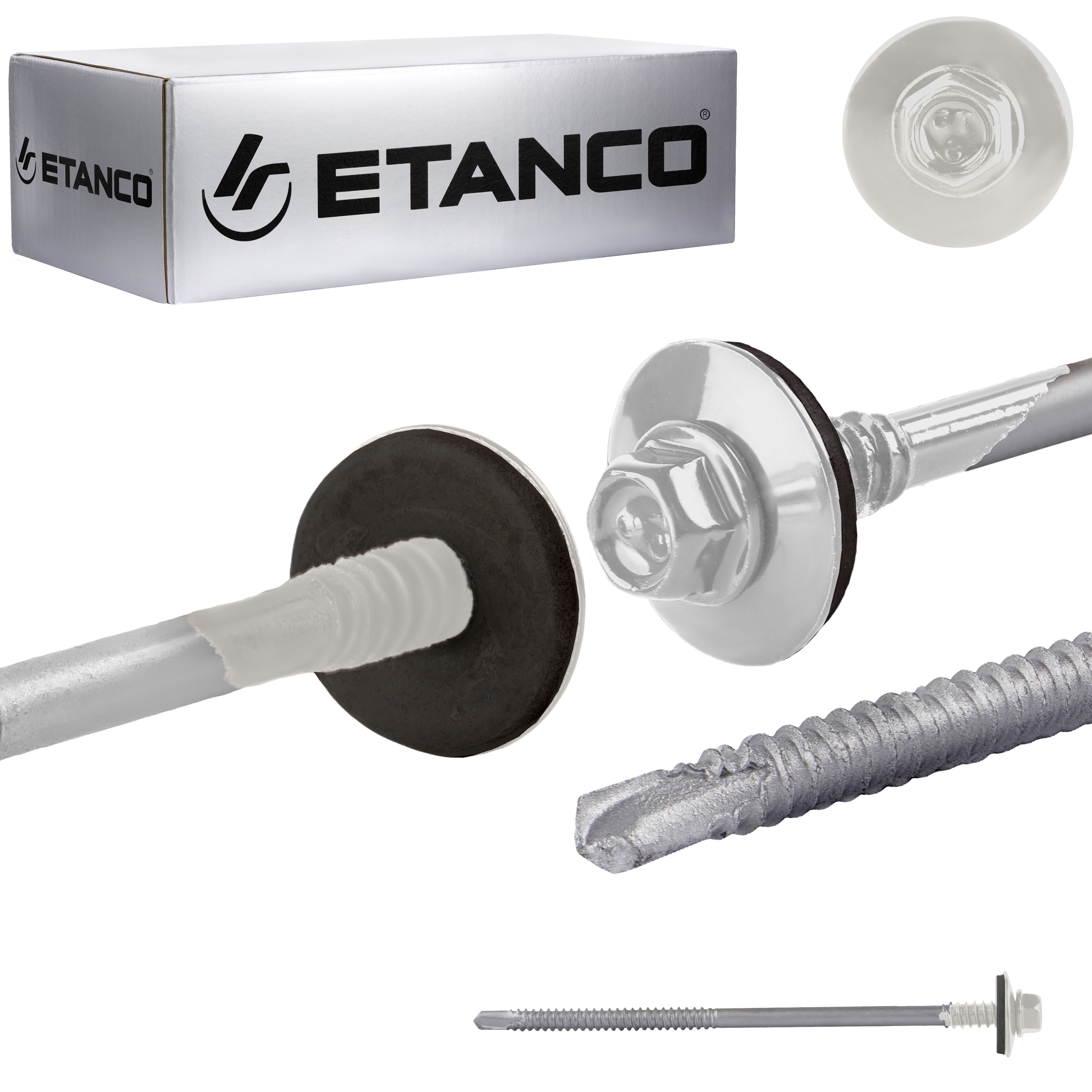 Łeb sześciokątny zapewnia łatwy i pewny montaż wkrętów, co znacząco ułatwia pracę i zwiększa efektywność montażu. Charakterystyczne znakowanie produktów ETANCO, pozwala na ich łatwe rozpoznanie, każda partia produkcyjna otrzymuje unikalny numer, co umożliwia jej precyzyjną identyfikację.