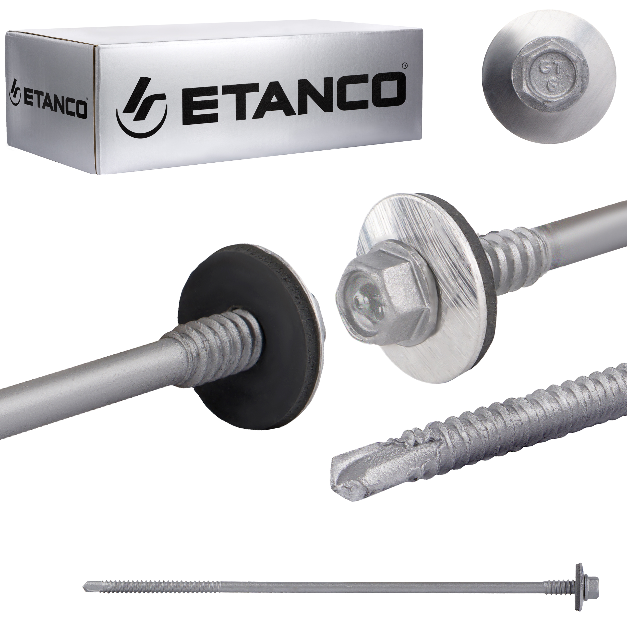 Łeb sześciokątny zapewnia łatwy i pewny montaż wkrętów, co znacząco ułatwia pracę i zwiększa efektywność montażu. Charakterystyczne znakowanie produktów ETANCO, pozwala na ich łatwe rozpoznanie, każda partia produkcyjna otrzymuje unikalny numer, co umożliwia jej precyzyjną identyfikację.