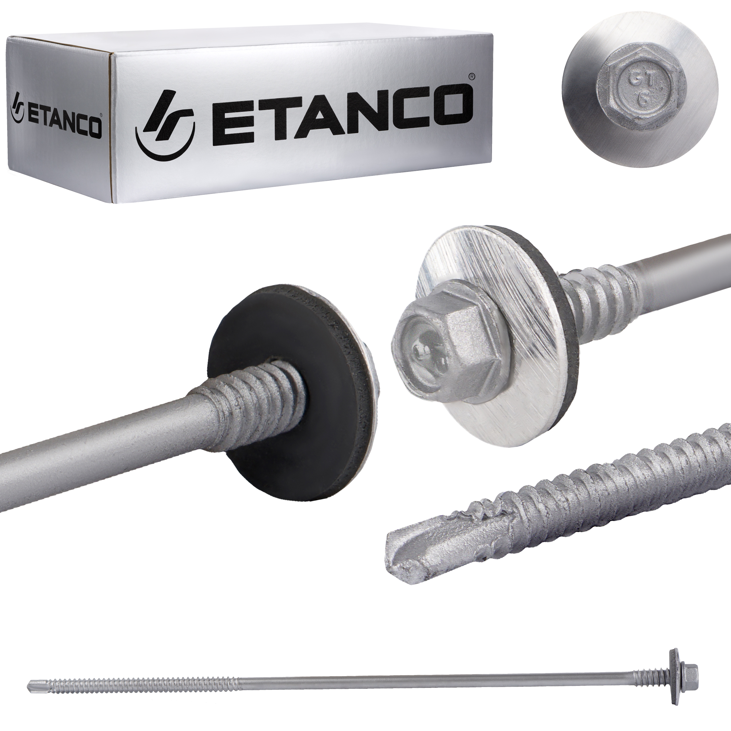 Łeb sześciokątny zapewnia łatwy i pewny montaż wkrętów, co znacząco ułatwia pracę i zwiększa efektywność montażu. Charakterystyczne znakowanie produktów ETANCO, pozwala na ich łatwe rozpoznanie, każda partia produkcyjna otrzymuje unikalny numer, co umożliwia jej precyzyjną identyfikację.