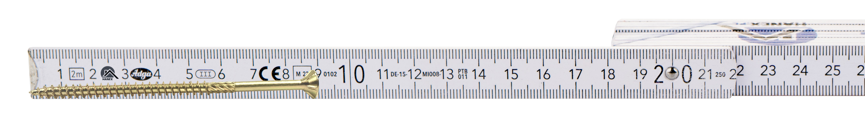 • Wkręty konstrukcyjne wykonane ze stali ocynkowanej posiadają łeb stożkowy z gniazdem typu TX oraz specjalną końcówkę wiercącą przeznaczoną do połączeń w konstrukcjach drewnianych.