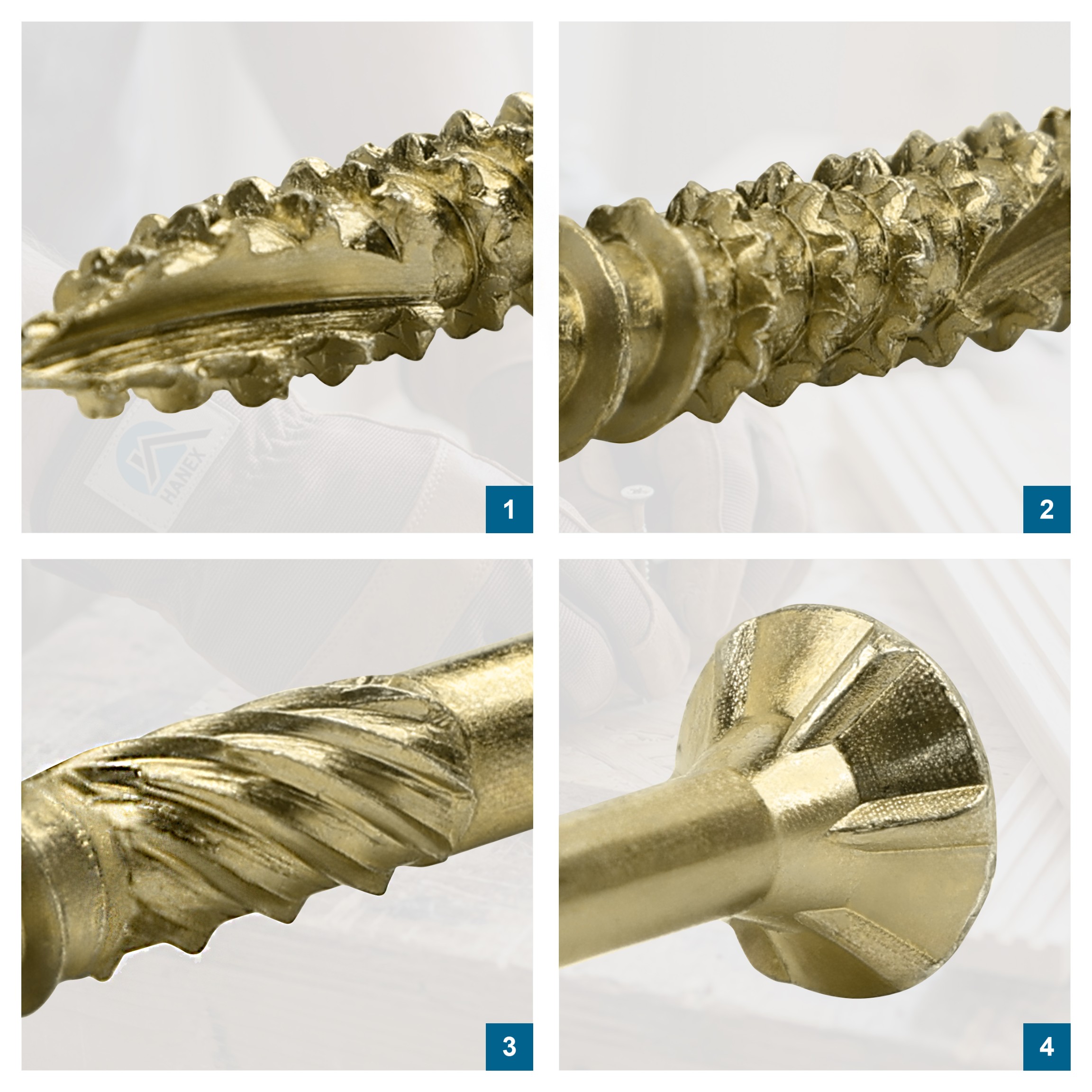 2. Karby tnące nacinają włókna drewna, ograniczając ryzyko pękania i rozszczepienia materiału. Dodatkowo redukują potrzebny moment siły przy wkręcaniu.
