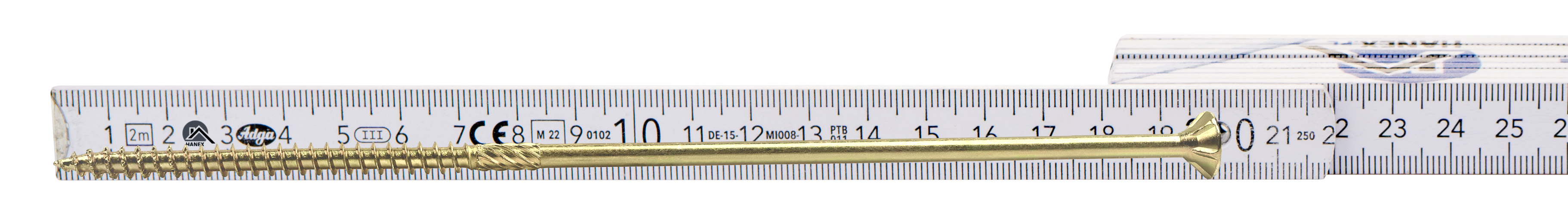 • Wkręty konstrukcyjne wykonane ze stali ocynkowanej posiadają łeb stożkowy z gniazdem typu TX oraz specjalną końcówkę wiercącą przeznaczoną do połączeń w konstrukcjach drewnianych.