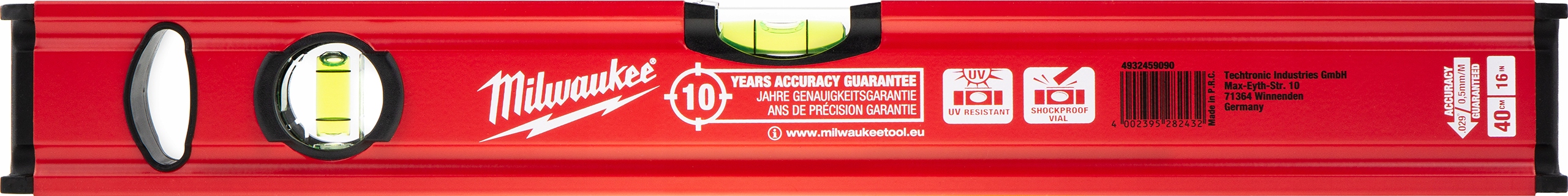 Poziomica Slim Milwaukee 40 cm - 2 mocne libelle akrylowe antypoślizgowa