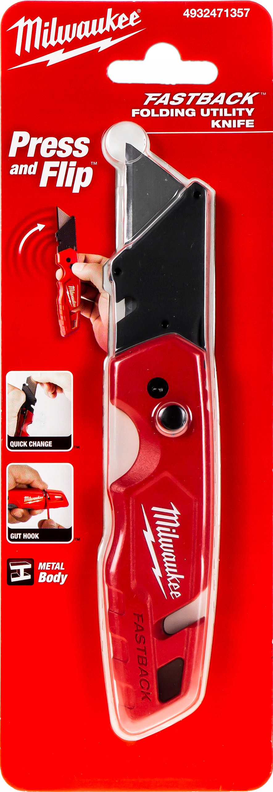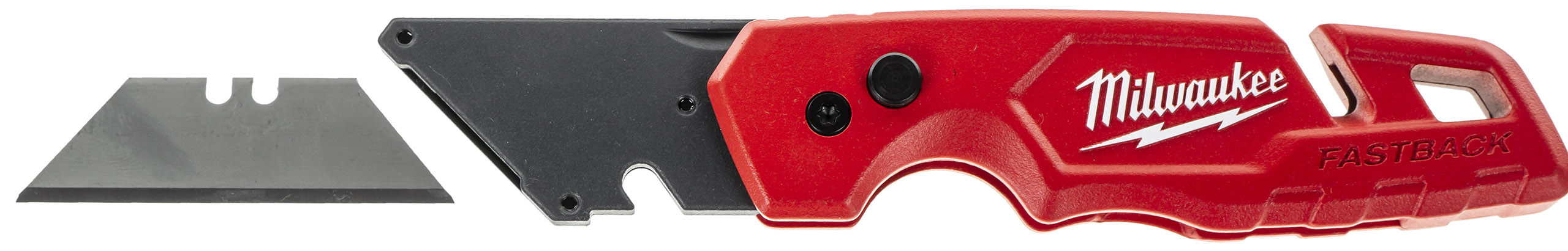 Opinie o Nóż składany budowlany FASTBACK Milwaukee z wymiennym ostrzem trapezowym