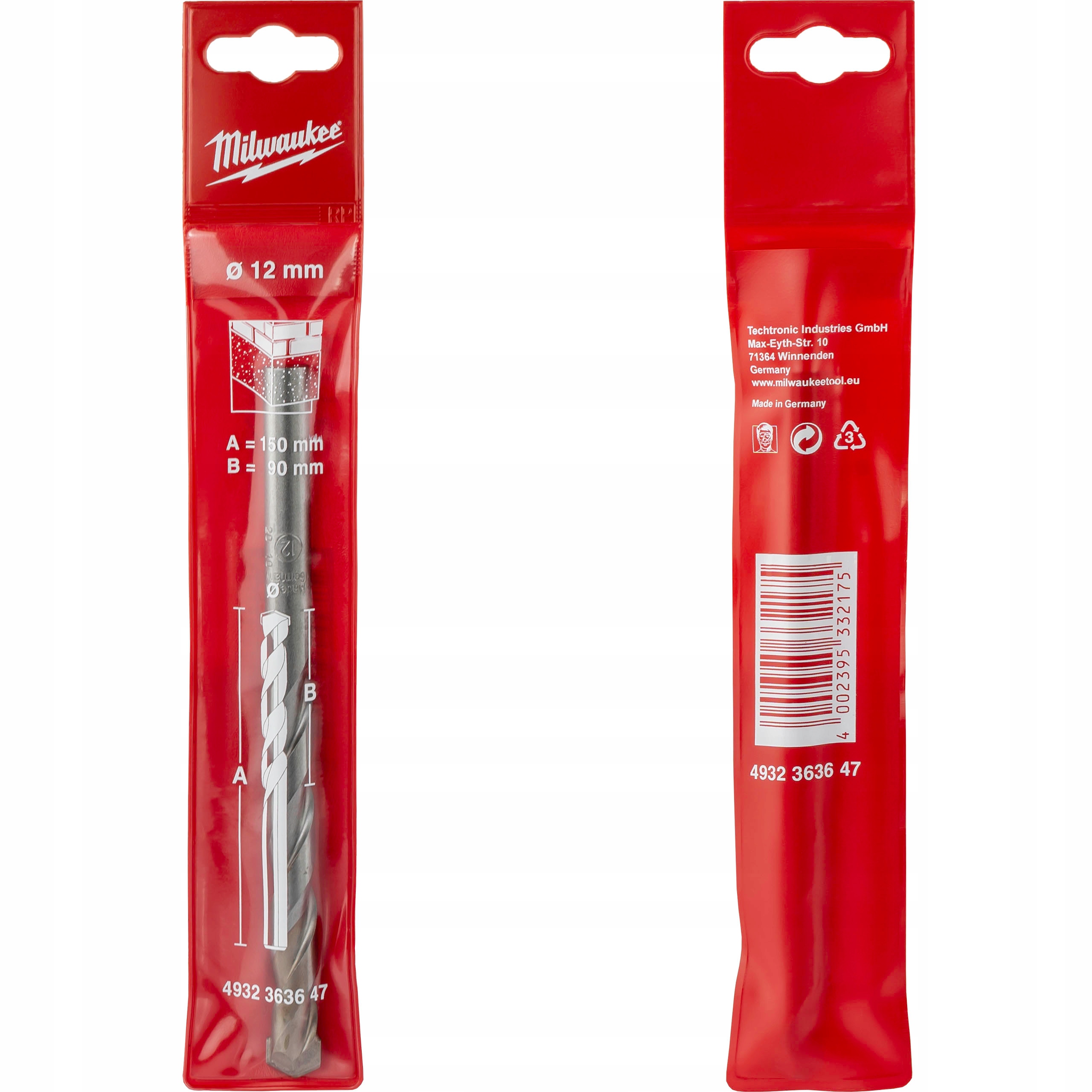 Wiertło do betonu 12 x 90/150 mm udarowe Milwaukee. Ilość w opakowaniu - 1 szt.