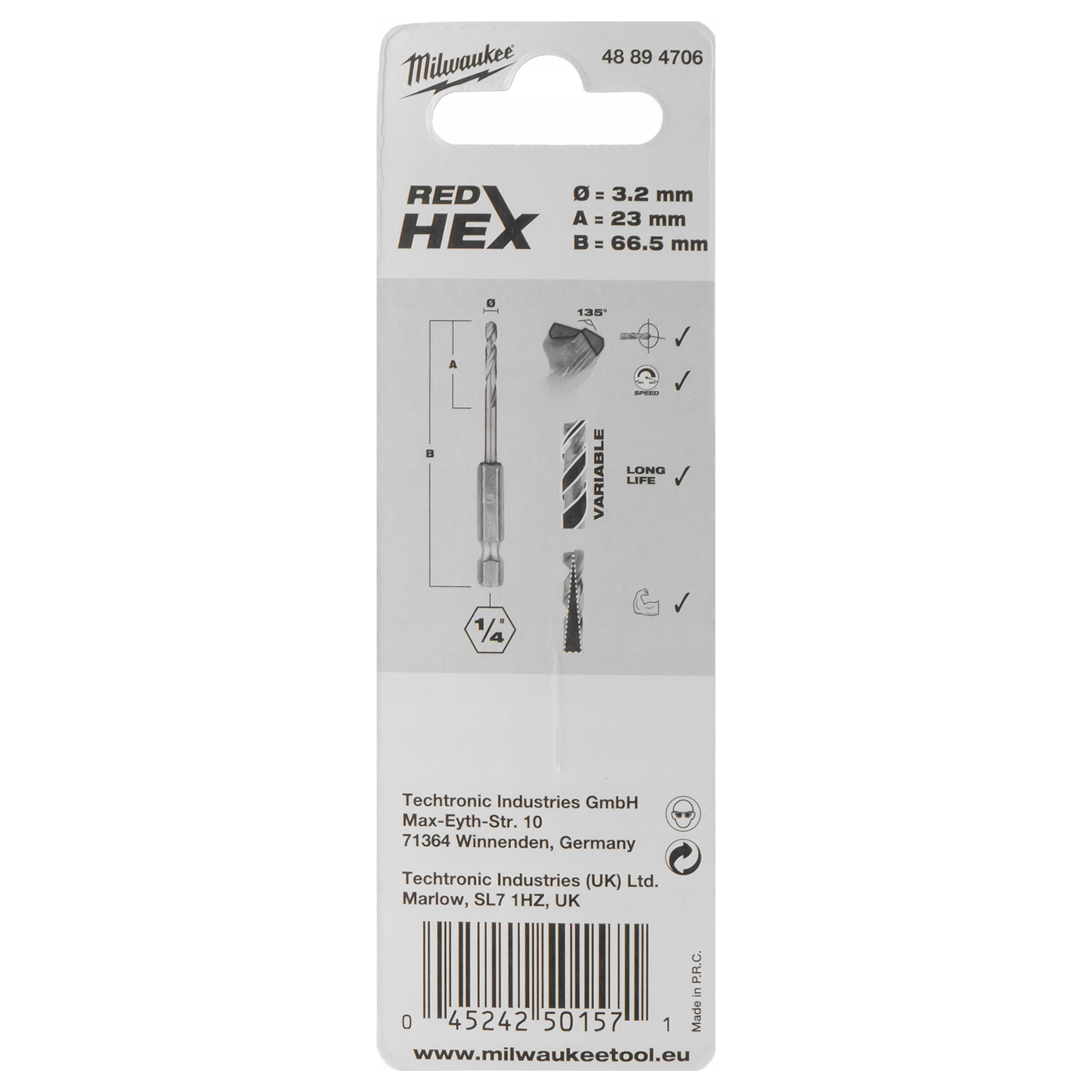 Wiertła do metalu tytanowe HEX 3,2 mm 2 szt. Milwaukee HSS-G Tin