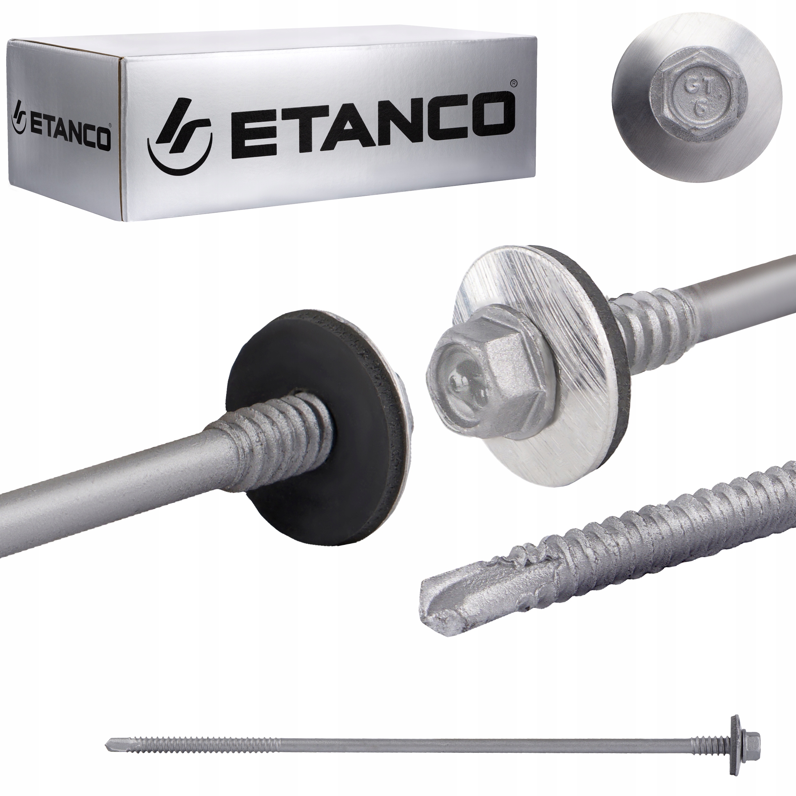 Łeb sześciokątny zapewnia łatwy i pewny montaż wkrętów, co znacząco ułatwia pracę i zwiększa efektywność montażu. Charakterystyczne znakowanie produktów ETANCO, pozwala na ich łatwe rozpoznanie, każda partia produkcyjna otrzymuje unikalny numer, co umożliwia jej precyzyjną identyfikację.