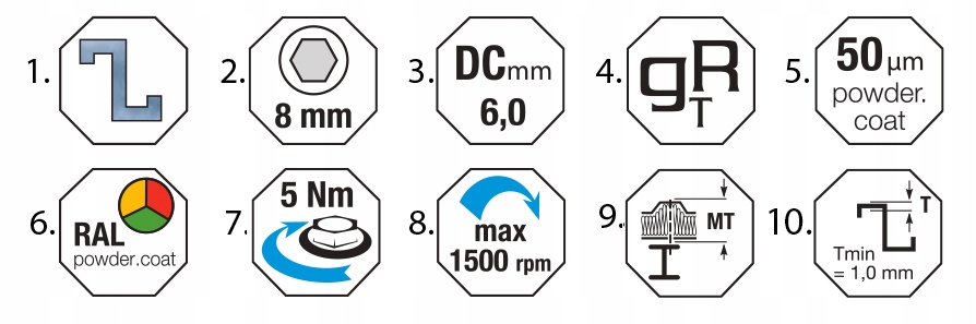 - Moment dokręcający: 5 Nm