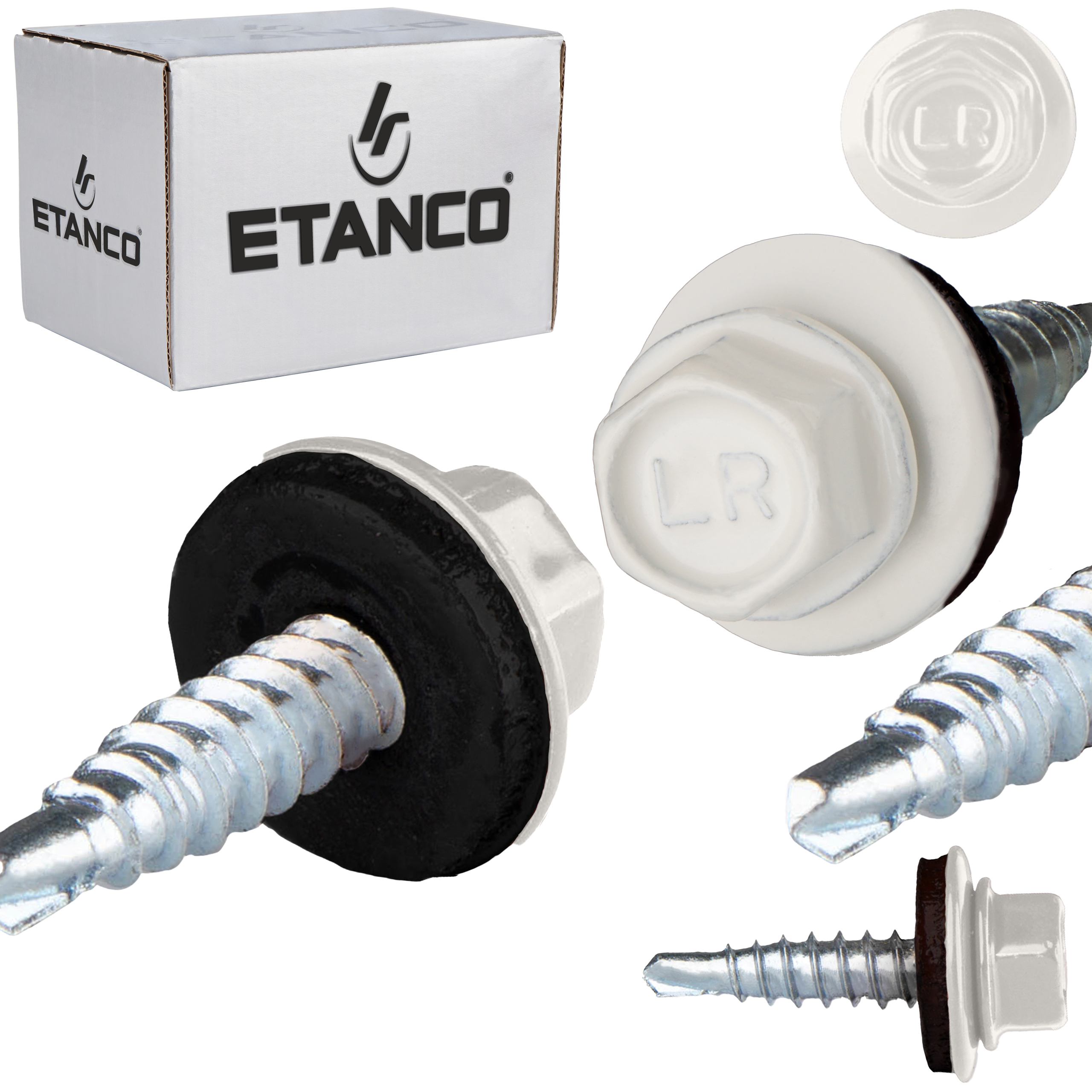 Łeb sześciokątny zapewnia łatwy i pewny montaż wkrętów, co znacząco ułatwia pracę i zwiększa efektywność montażu. Charakterystyczne znakowanie produktów ETANCO, pozwala na ich łatwe rozpoznanie, każda partia produkcyjna otrzymuje unikalny numer, co umożliwia jej precyzyjną identyfikację.