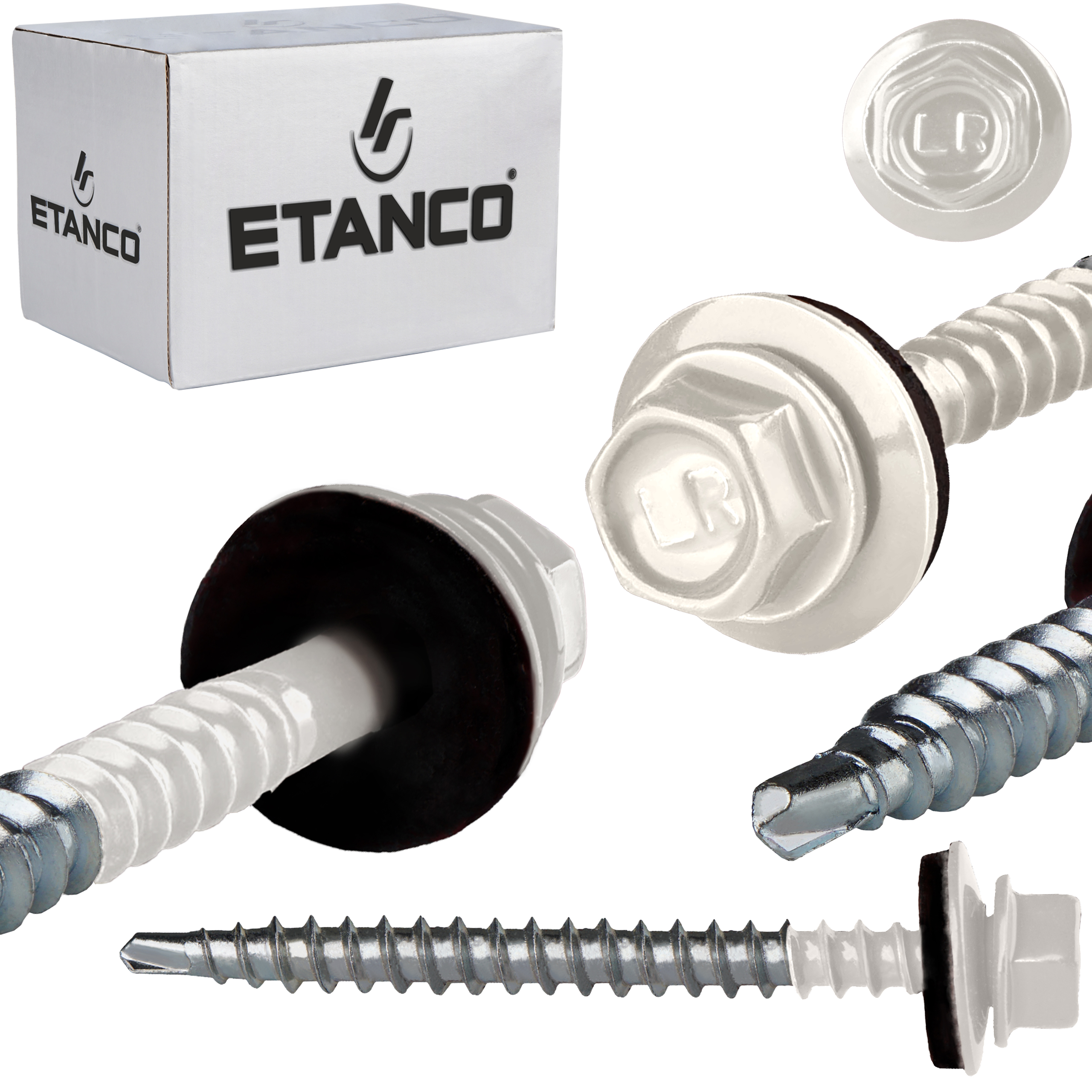 Łeb sześciokątny zapewnia łatwy i pewny montaż wkrętów, co znacząco ułatwia pracę i zwiększa efektywność montażu. Charakterystyczne znakowanie produktów ETANCO, pozwala na ich łatwe rozpoznanie, każda partia produkcyjna otrzymuje unikalny numer, co umożliwia jej precyzyjną identyfikację.
