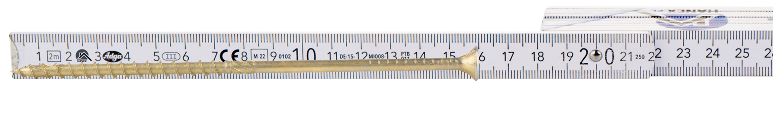 - Wkręty konstrukcyjne wykonane ze stali ocynkowanej posiadają łeb stożkowy z gniazdem typu TX oraz specjalną końcówkę wiercącą przeznaczoną do połączeń w konstrukcjach drewnianych.