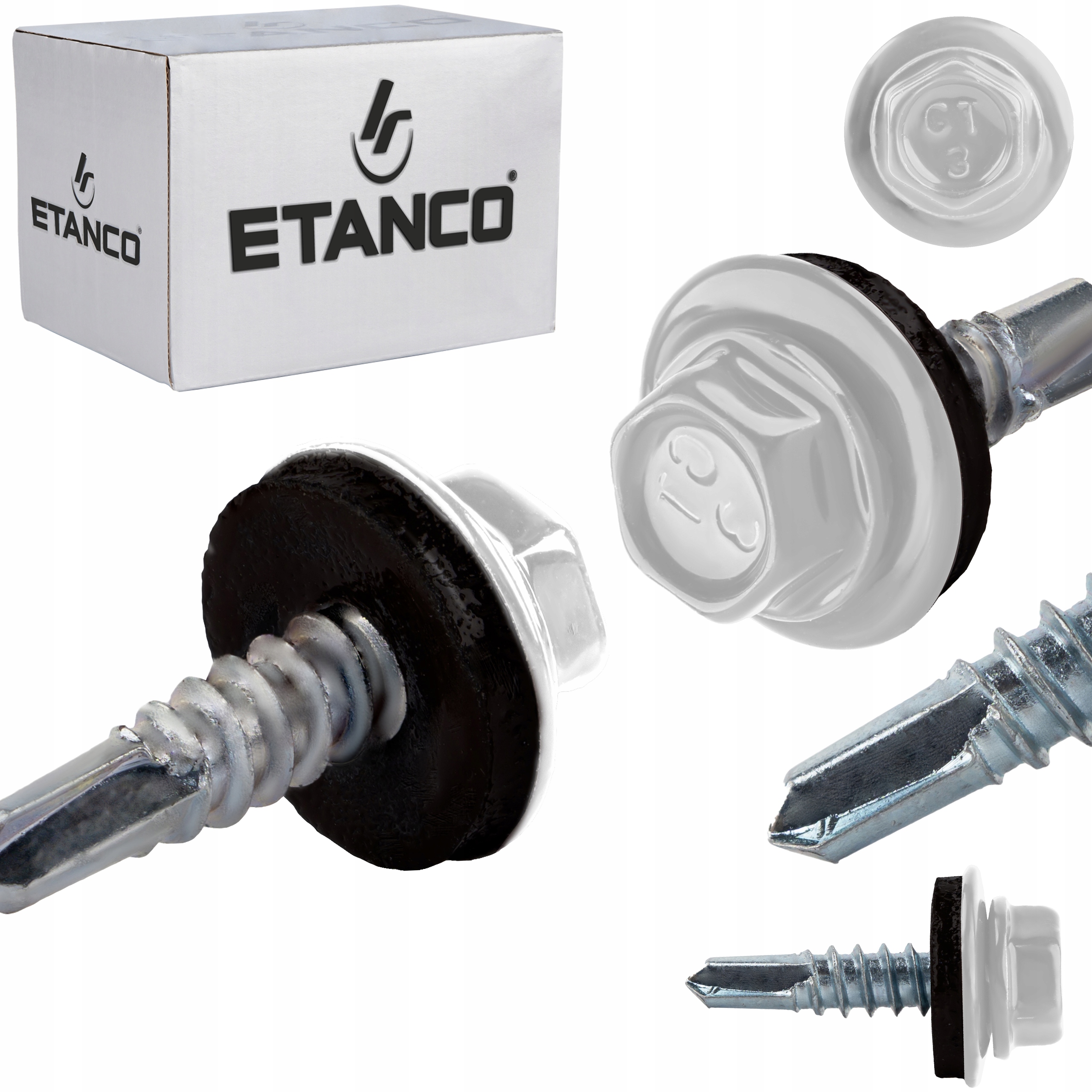 Łeb sześciokątny zapewnia łatwy i pewny montaż wkrętów, co znacząco ułatwia pracę i zwiększa efektywność montażu. Charakterystyczne znakowanie produktów ETANCO, pozwala na ich łatwe rozpoznanie, każda partia produkcyjna otrzymuje unikalny numer, co umożliwia jej precyzyjną identyfikację.