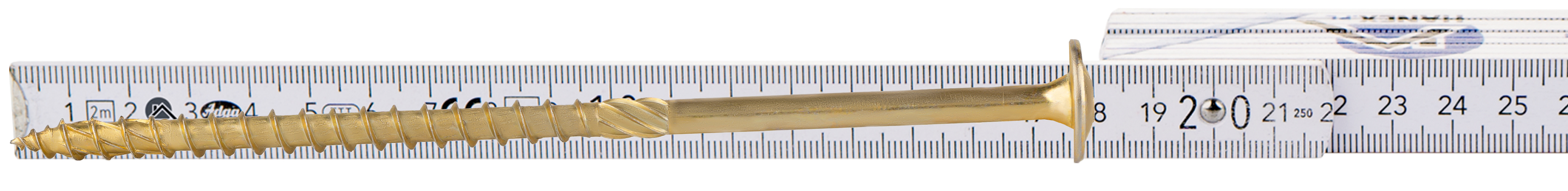 - Wkręty konstrukcyjne wykonane ze stali ocynkowanej posiadają łeb podkładkowy z gniazdem typu TORX oraz specjalną końcówkę wiercącą przeznaczoną do połączeń w konstrukcjach drewni
