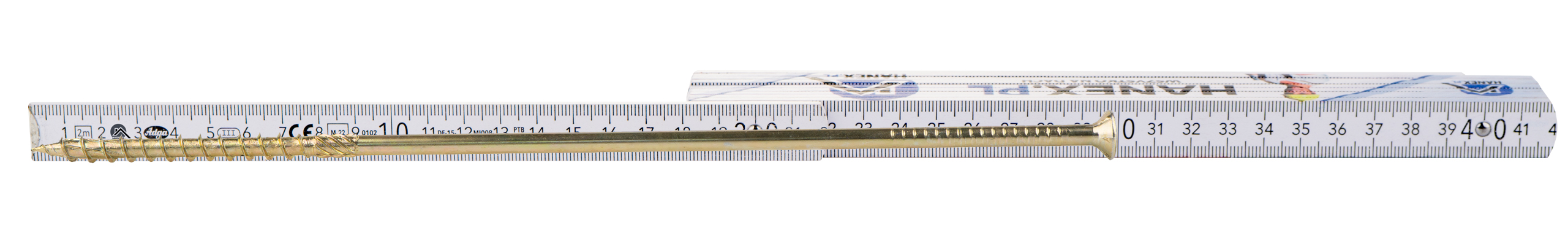 - Wkręty konstrukcyjne wykonane ze stali ocynkowanej posiadają łeb stożkowy z gniazdem typu TX oraz specjalną końcówkę wiercącą przeznaczoną do połączeń w konstrukcjach drewnianych.