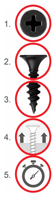 Specjalny profil gwintu minimalizujący czas wkręcenia: 2,5 raza krótszy czas wkręcania od wymagań normy.