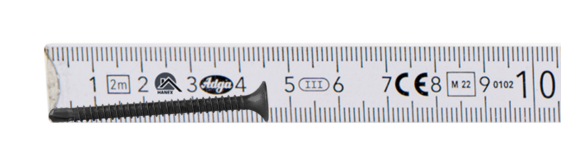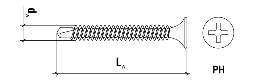 Wkręty KSSG wykonane są ze stali fosfatowanej, posiadają łeb stożkowy z gniazdem PH-2, gwint do stali oraz samowiercącą końcówkę o zdolności wiercenia w stali do 2,5 mm.