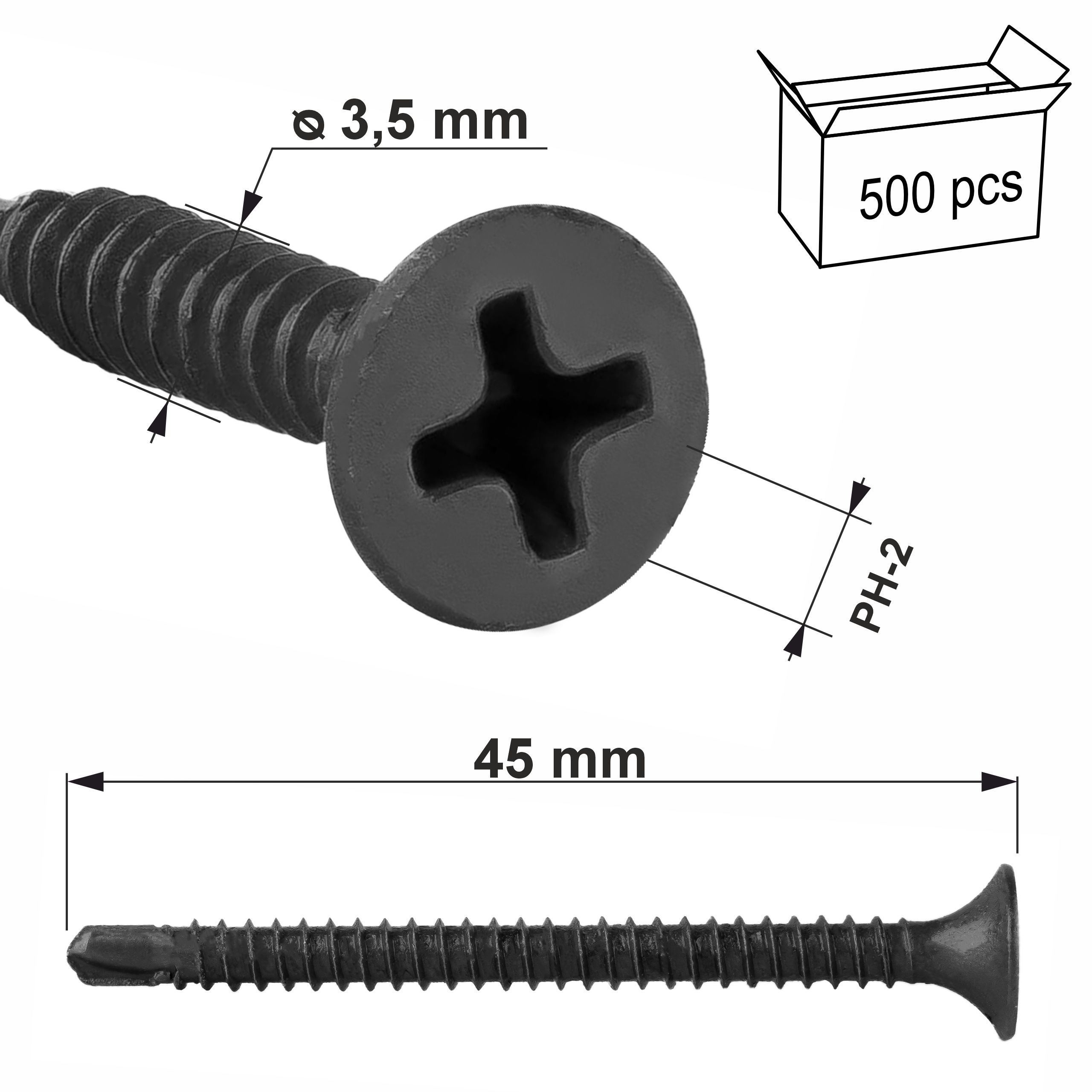 Wkręty do GK do metalu 3,5x45 mm 500 szt. samowiercące Klimas KSSG