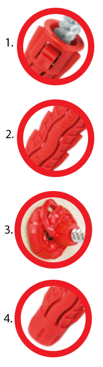 Wypusty stabilizujące zapobiegają przekręcaniu koszulki w otworze oraz zwiększają siłę rozparcia w podłożu. Kształt koszulki powoduje spętlenie się tworzywa i pewne zakotwienie po przeciwnej stronie cienkościennego podłoża.