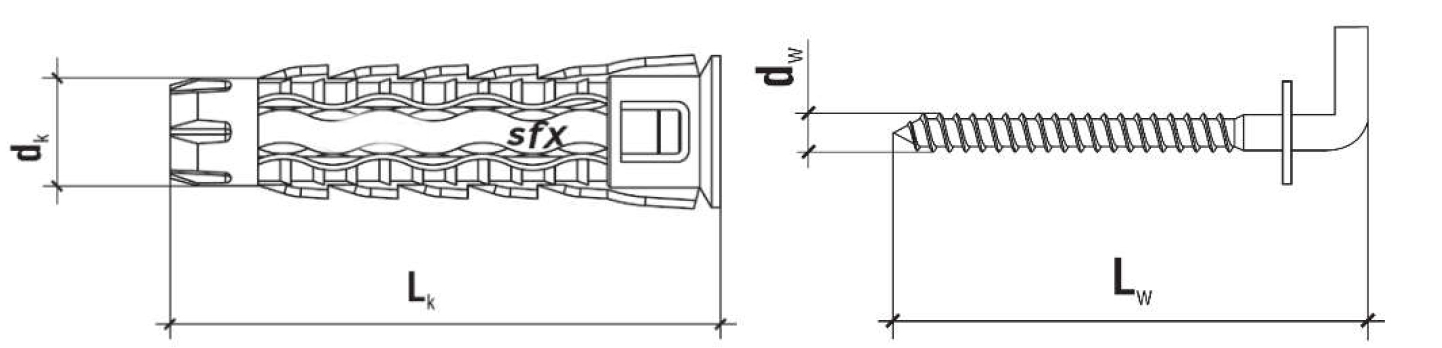 Składa się z koszulki wykonanej z poliamidu oraz wkręta wykonanego ze stali ocynkowanej z hakiem prostym.