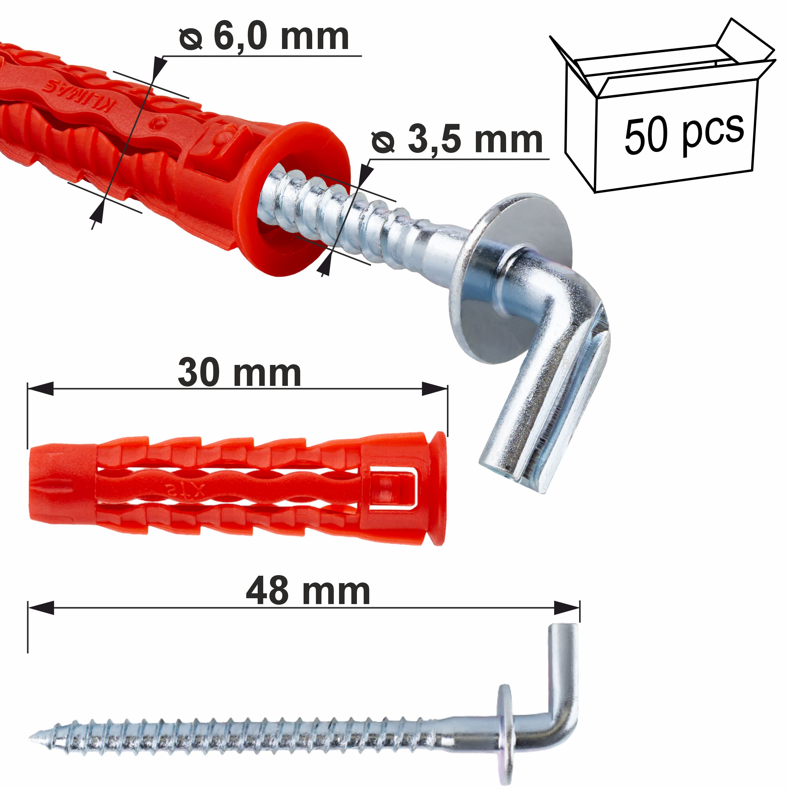 Kołki rozporowe z hakiem 6 x30mm 50szt. Uniwersalne do każdego podłoża SFXL