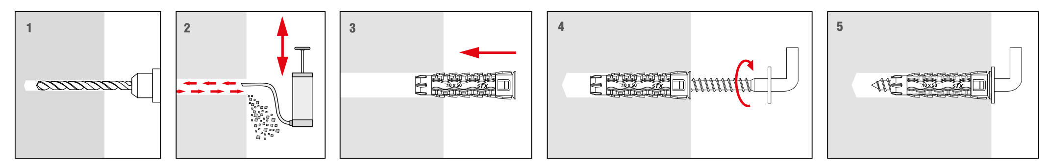 - Nadzorowany jest sposób wiercenia (otwory w podłożu murowym z elementów perforowanych lub z betonu komórkowego powinny być