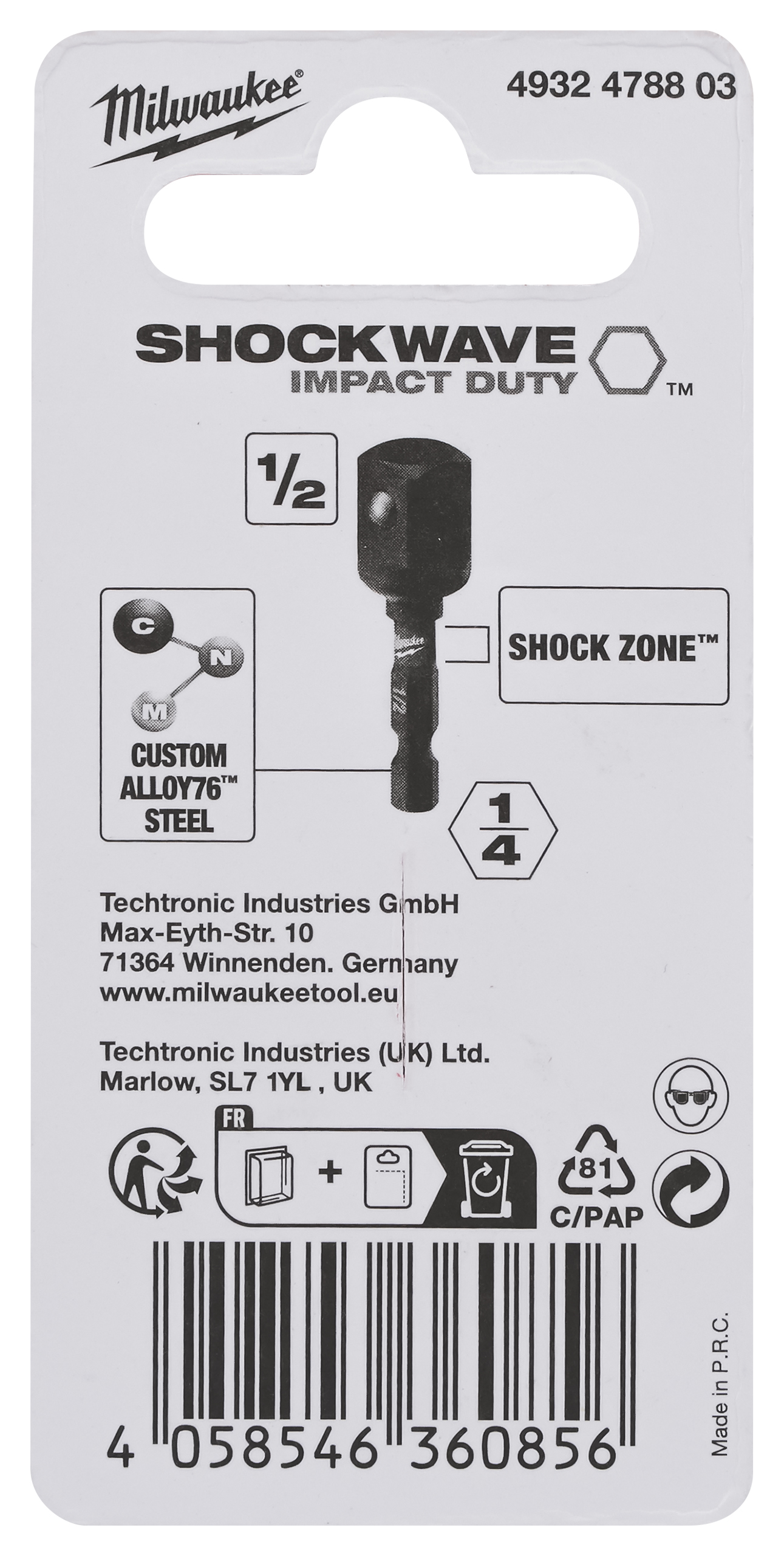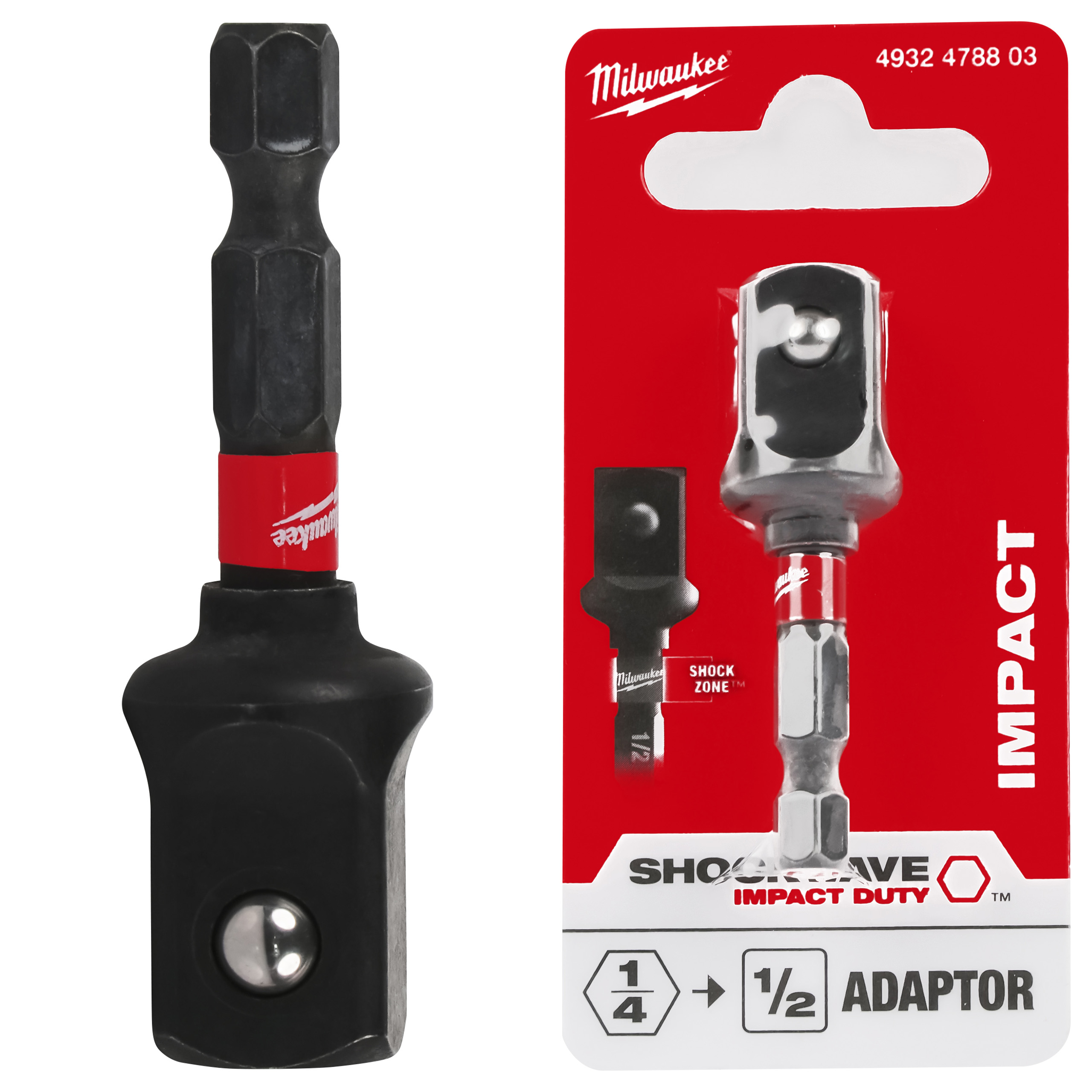 Adapter udarowy Milwaukee Shockwave 1/4 HEX na 1/2 kwadrat mocny